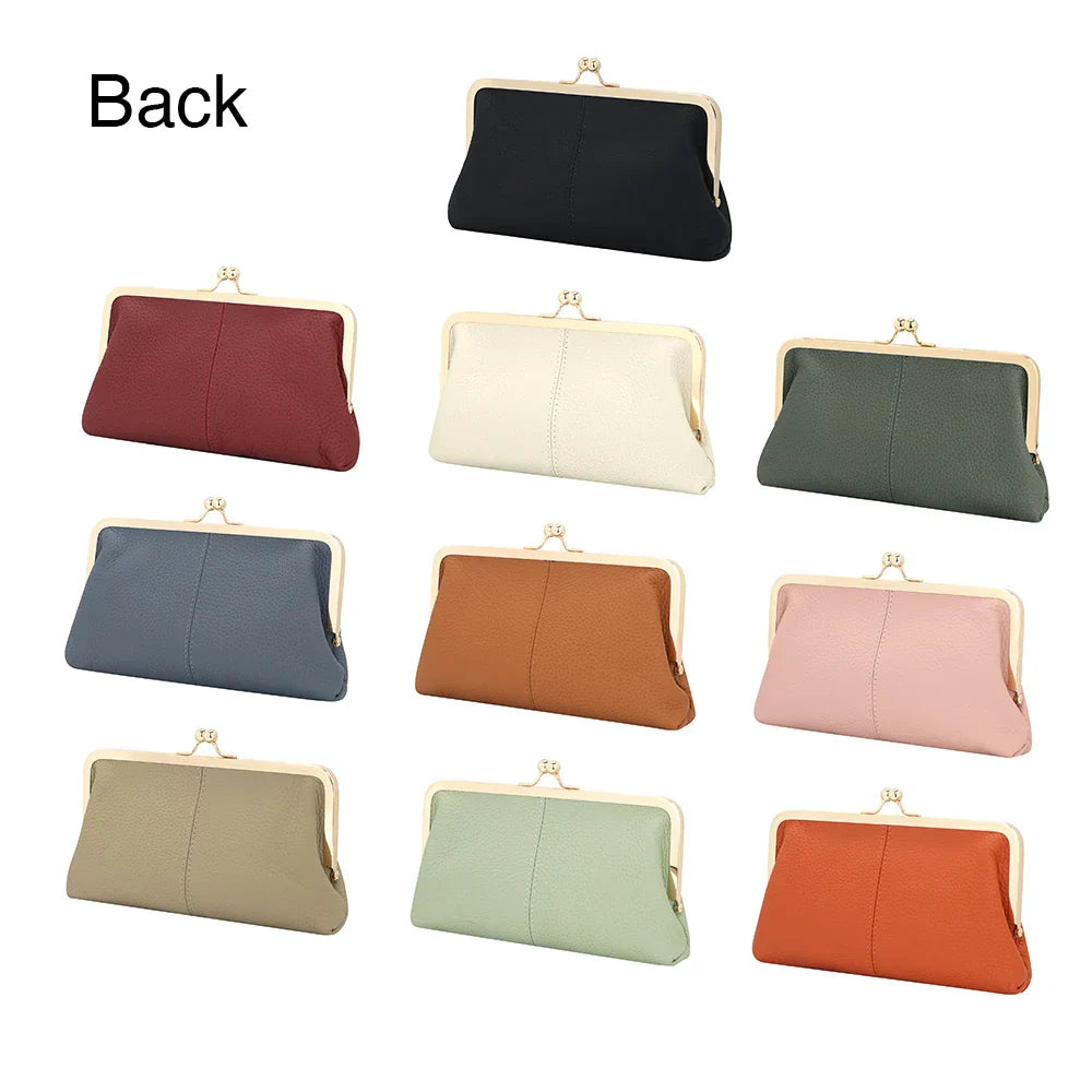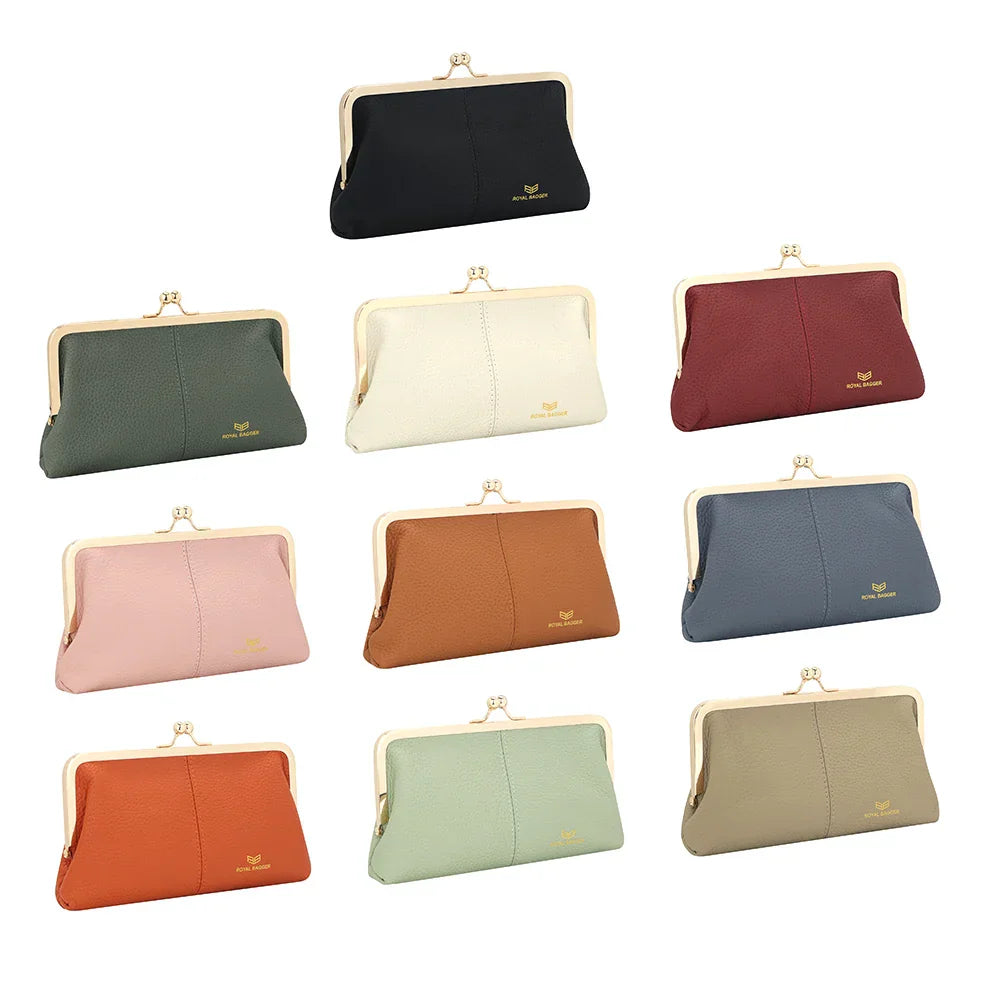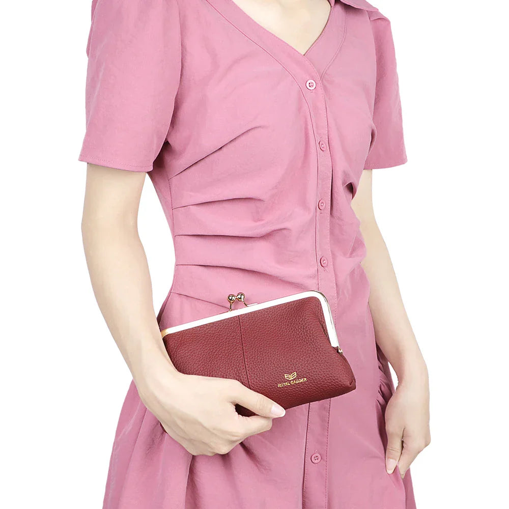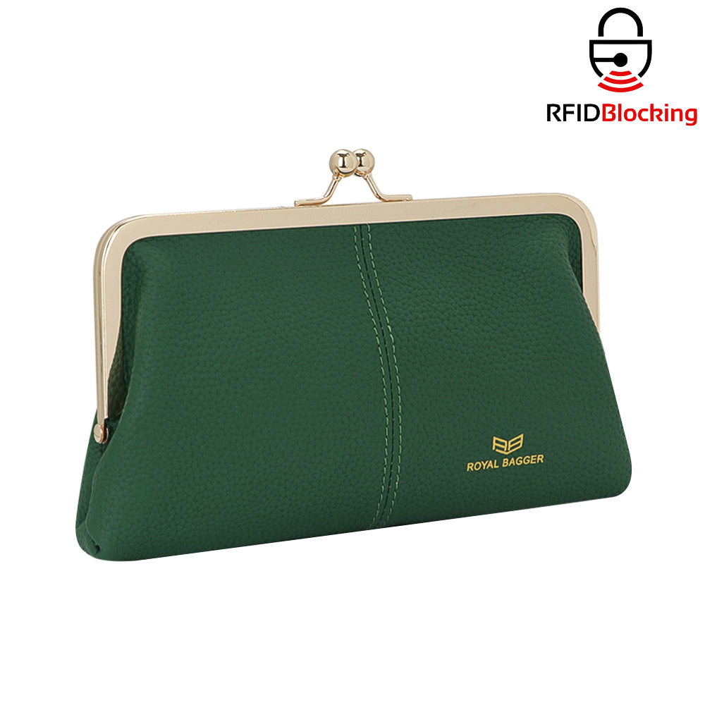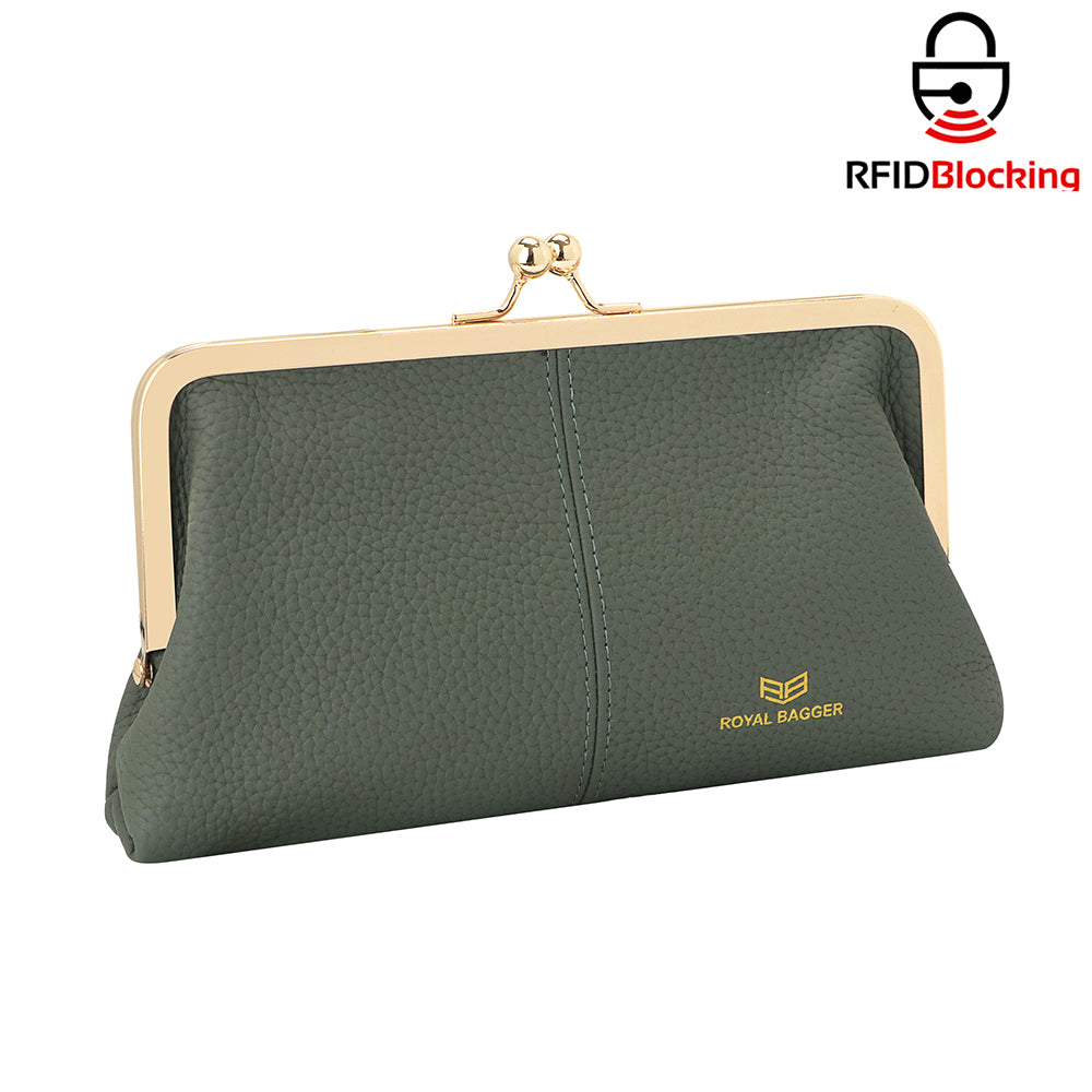 Royal Bagger RFID Kiss Lock Wallet, Solid Color Multi-card Slots Card Holder, Genuine Leather Clutch Purses for Women 1468
