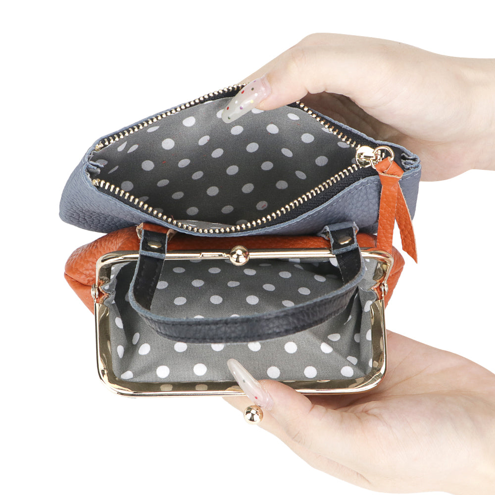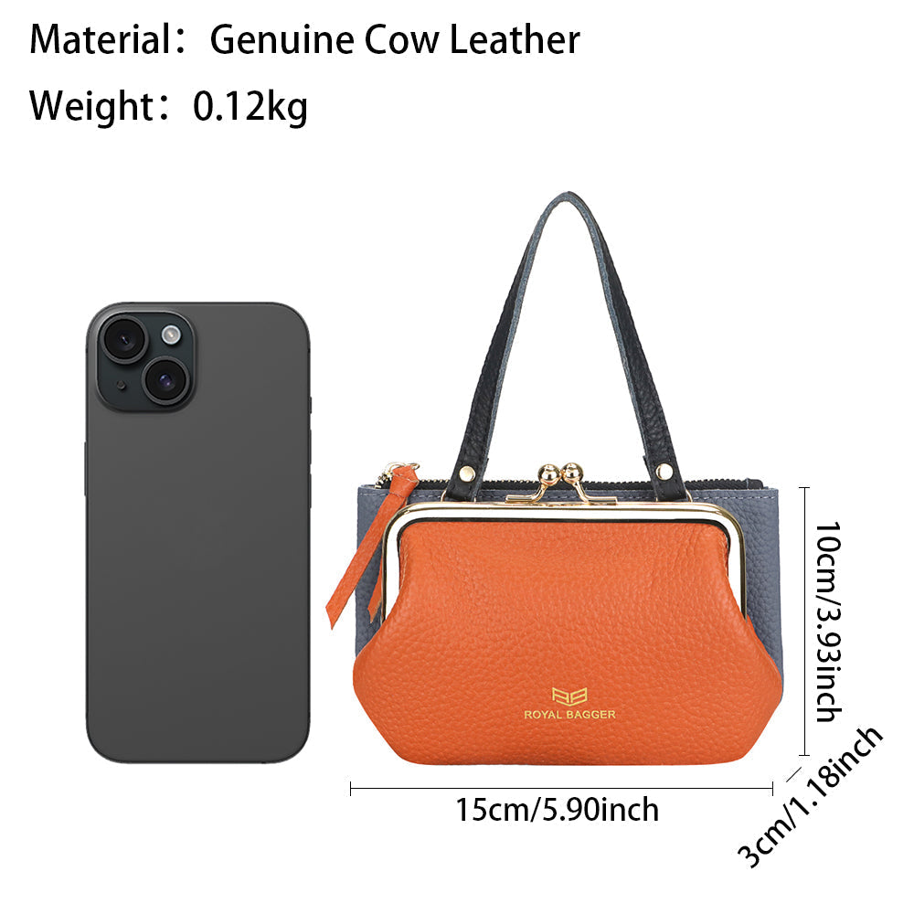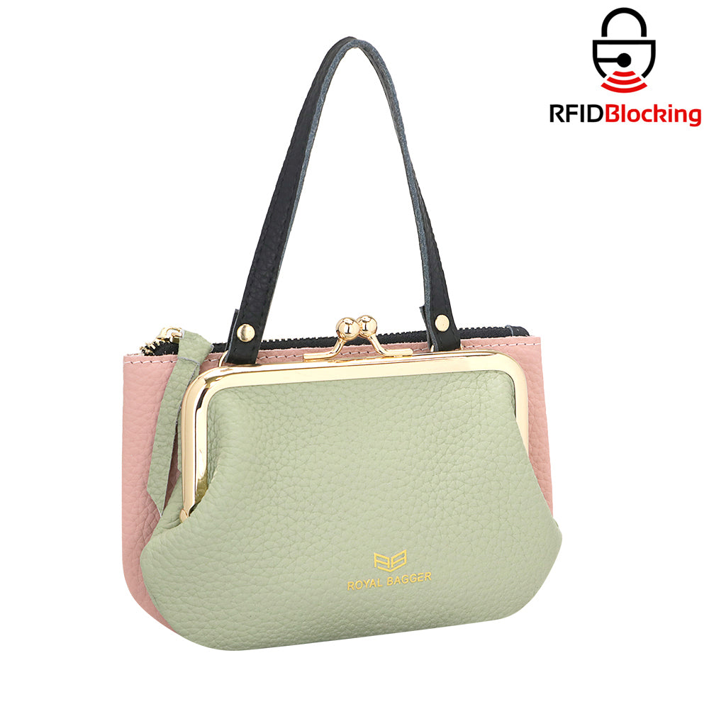 Royal Bagger Vintage RFID Coin Purse for Women, Genuine Cow Leather Handbag with Contrasting Colors and Kiss Lock Closure Storage Bag 1927