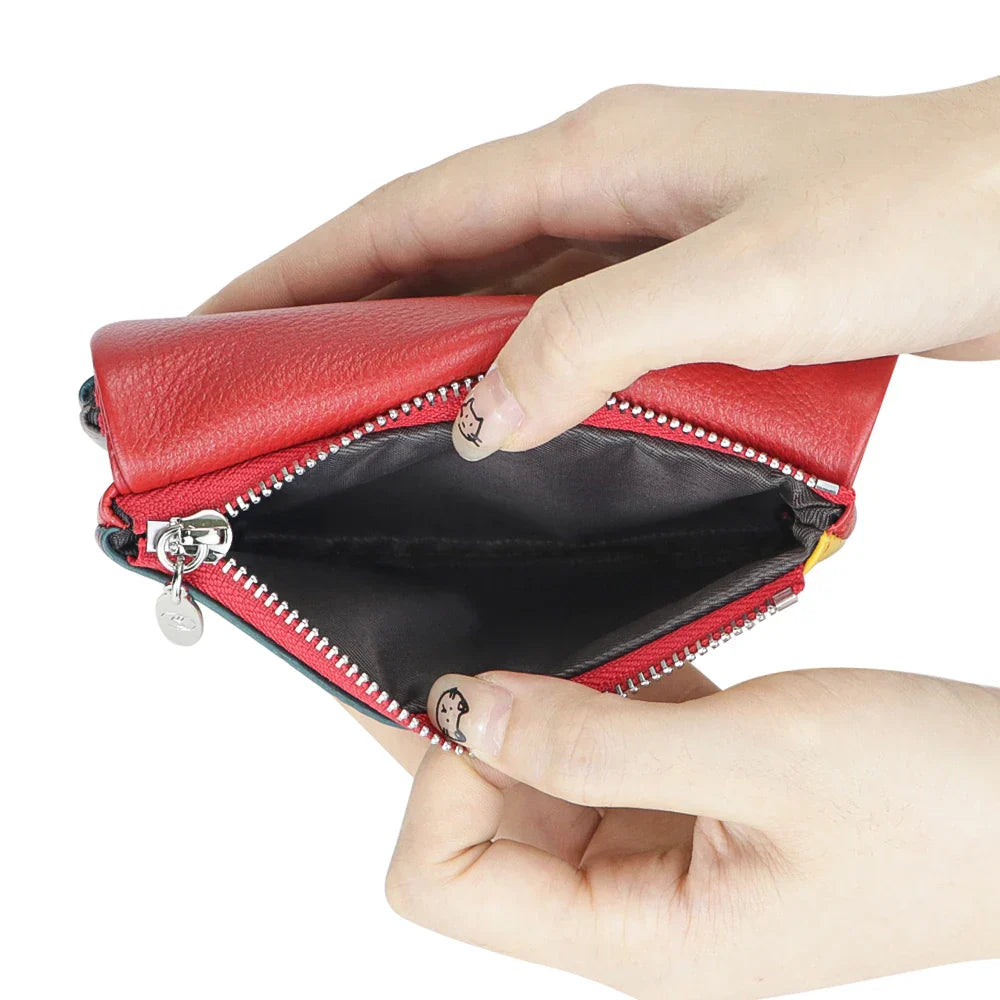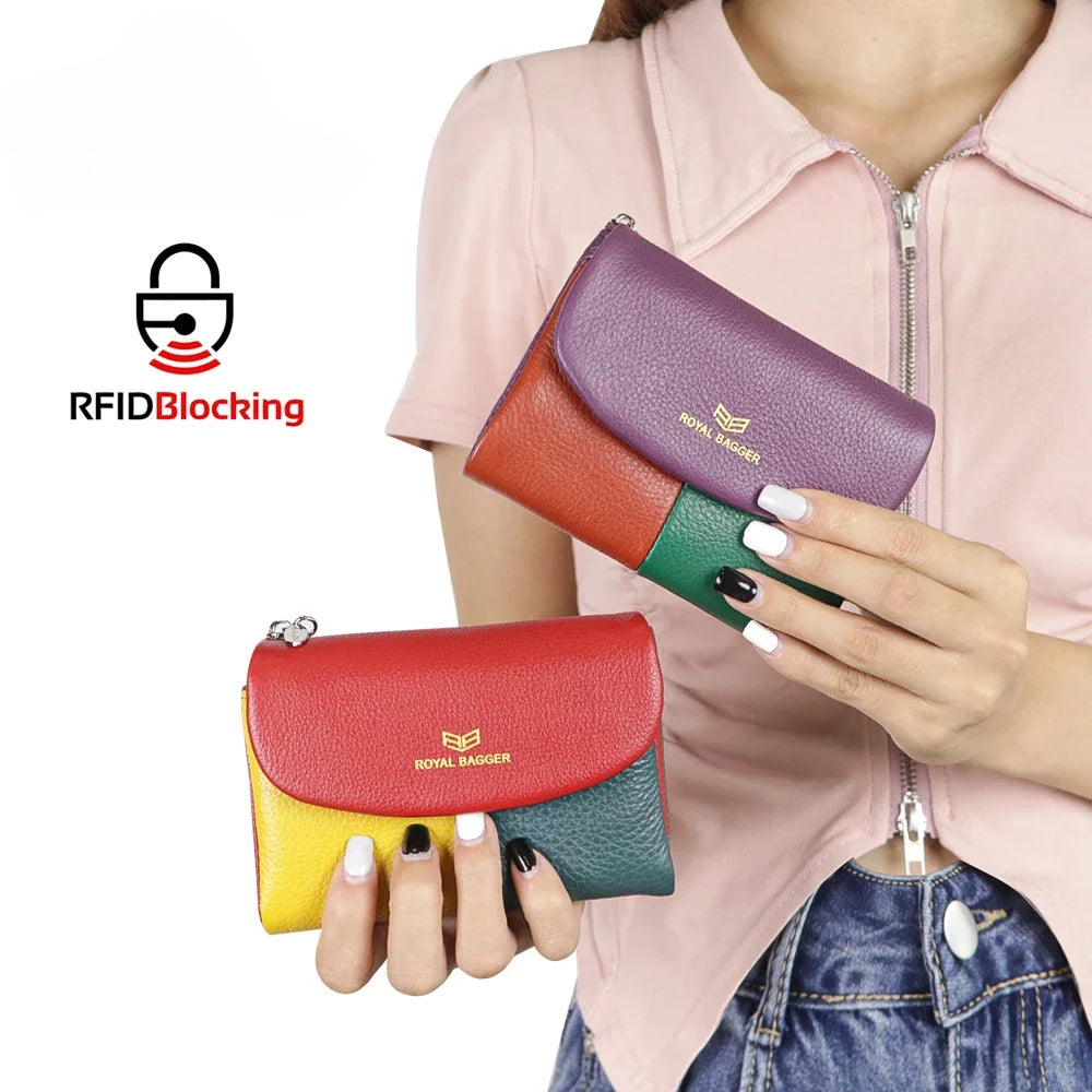 Royal Bagger Color Block RFID Short Wallets Genuine Leather Multi-card Slots Card Holder Trifold Purse Magnetic Opening 2053