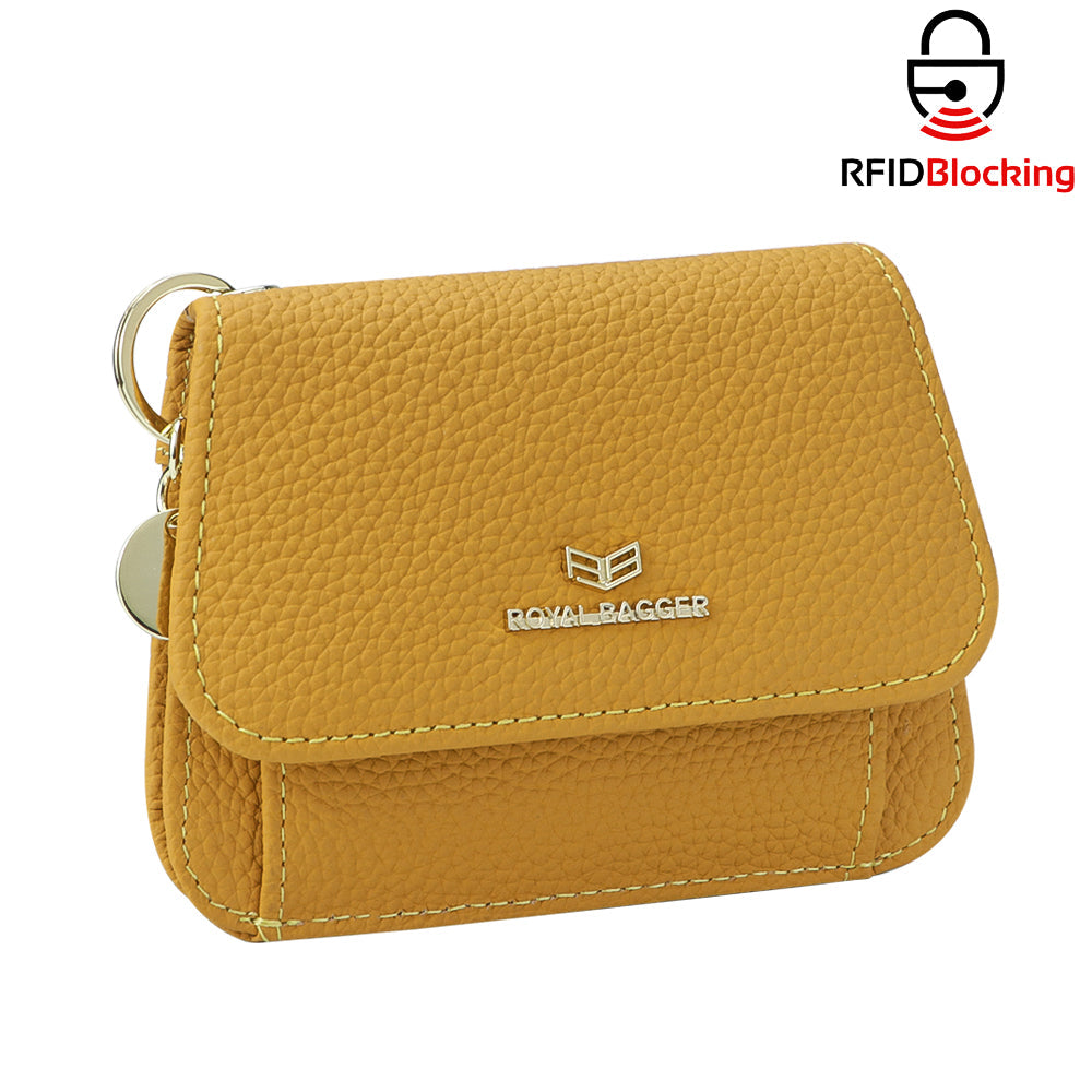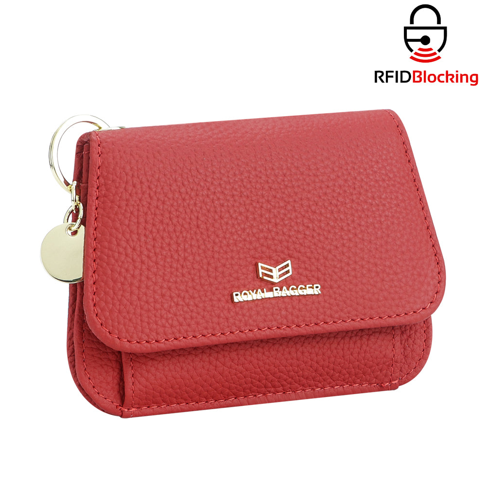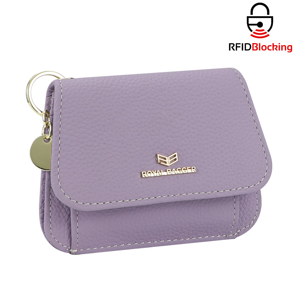 Royal Bagger Multi-card Slots Short Wallet Genuine Leather Credit Card Holder RFID Blocking Coin Purse with Keychain 2443