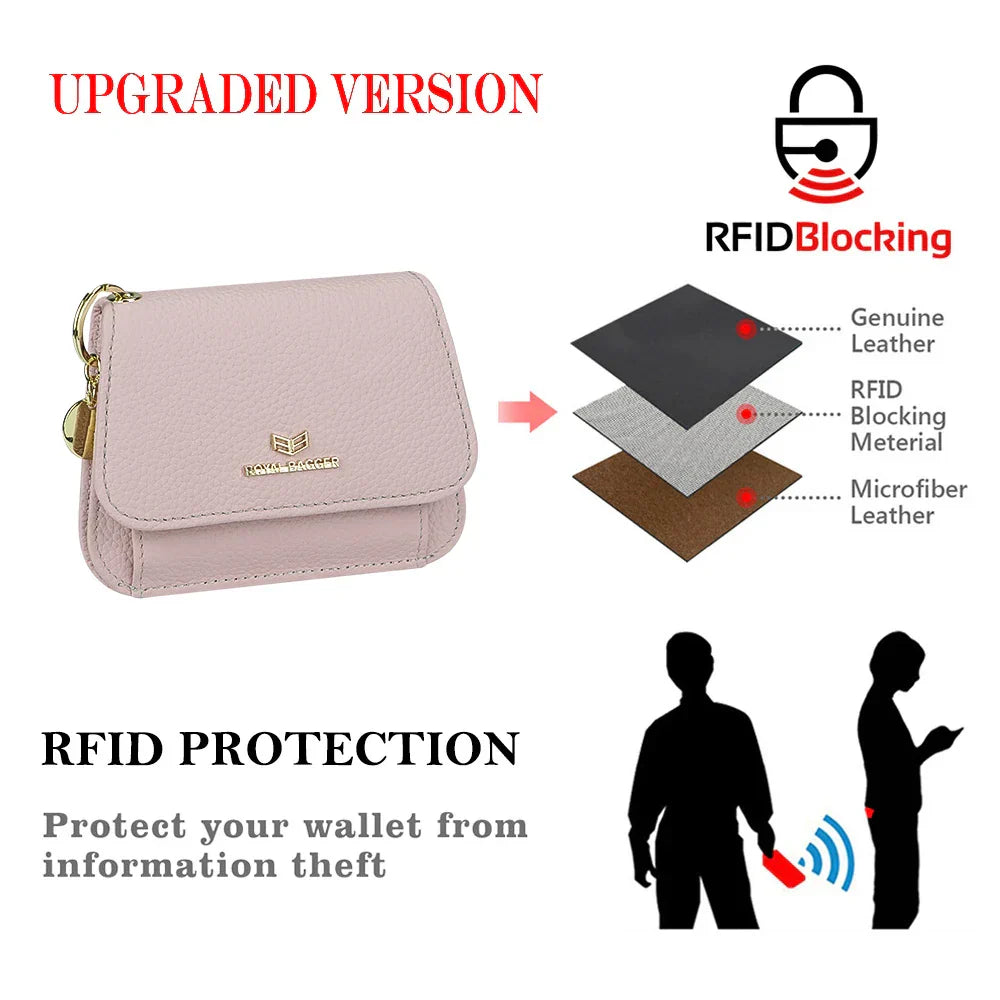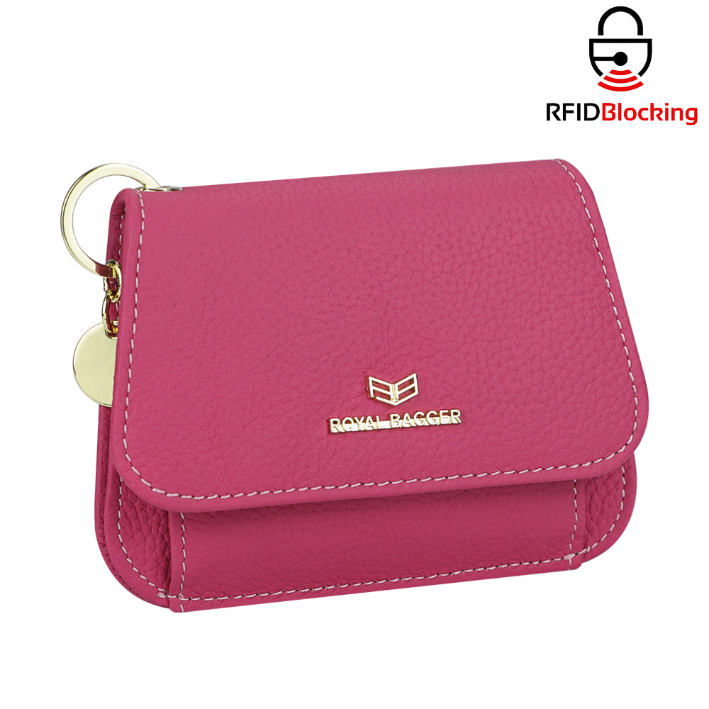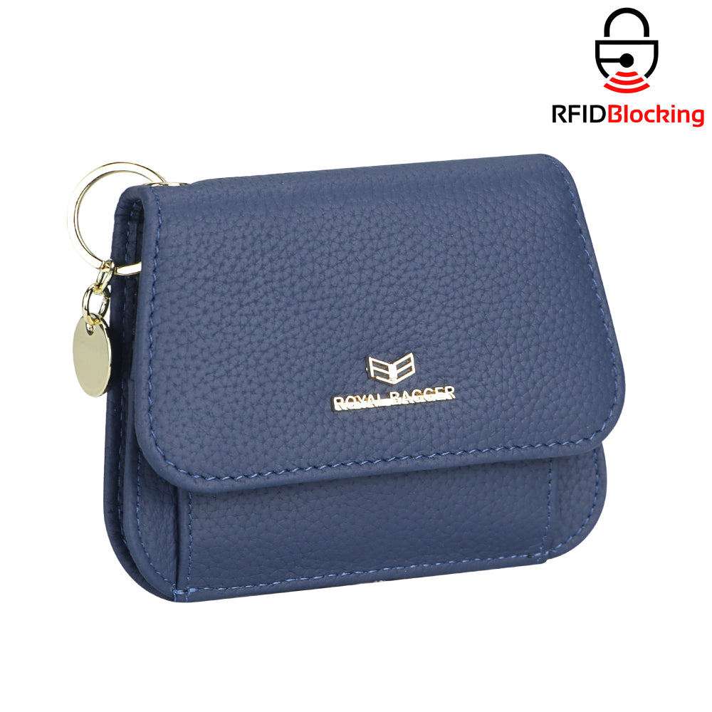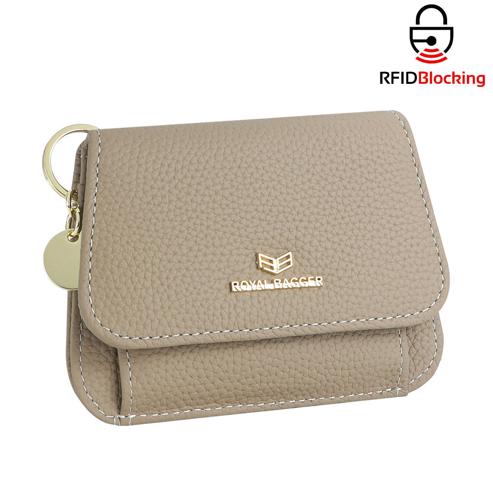 Royal Bagger Multi-card Slots Short Wallet Genuine Leather Credit Card Holder RFID Blocking Coin Purse with Keychain 2443
