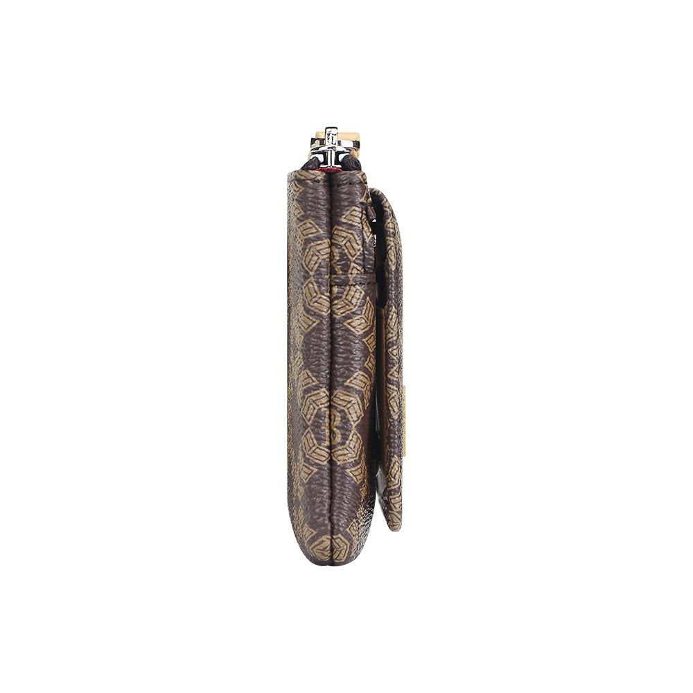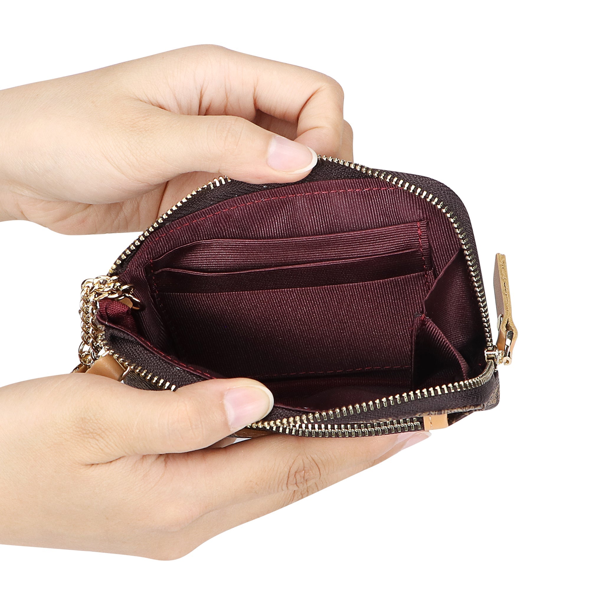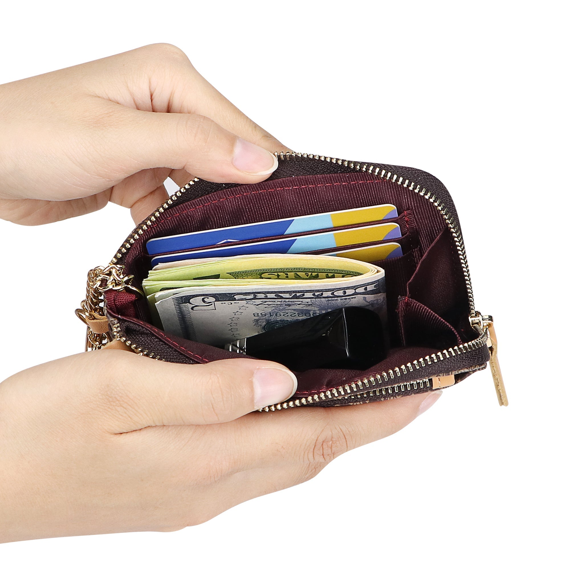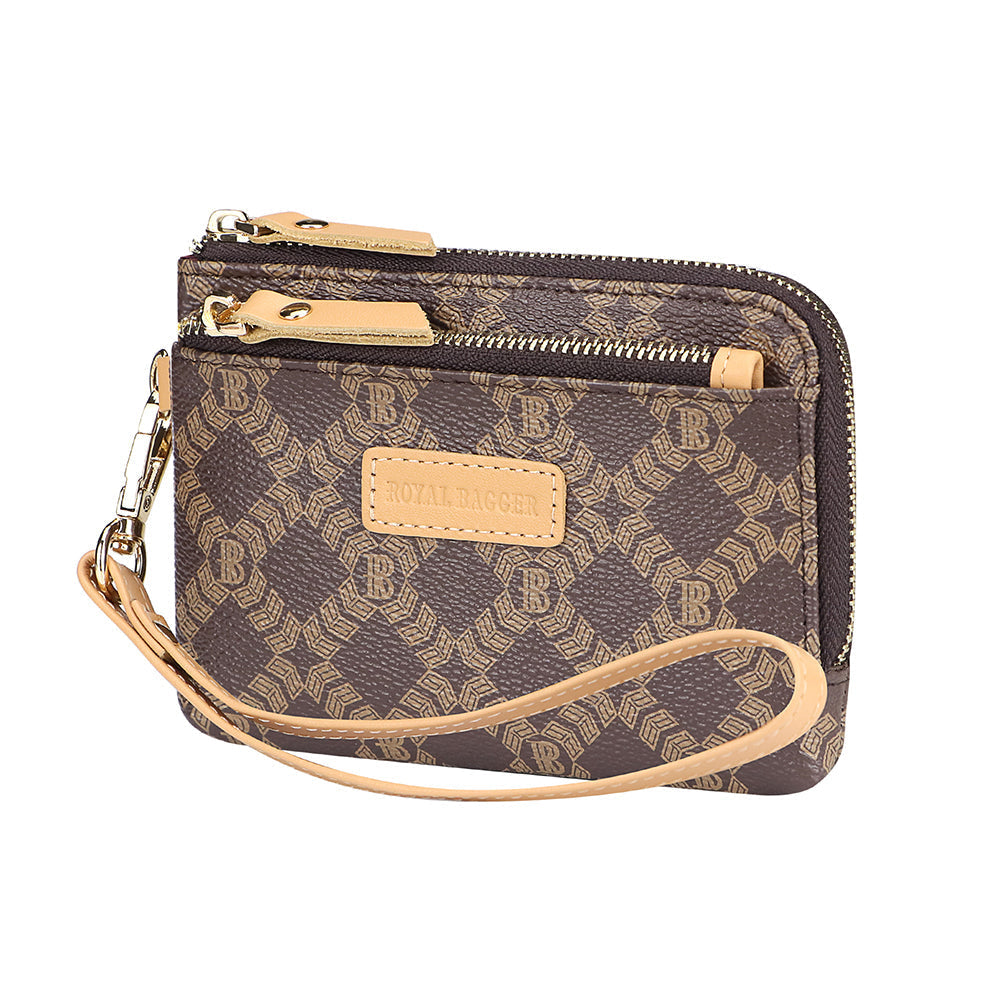 Royal Bagger Women's RFID Coin Purse – Signature Coated Canvas & Vegetable-Tanned Cowhide Leather, Multi-Zipper Clutch Wallet with Keychain & Wristlet 2903