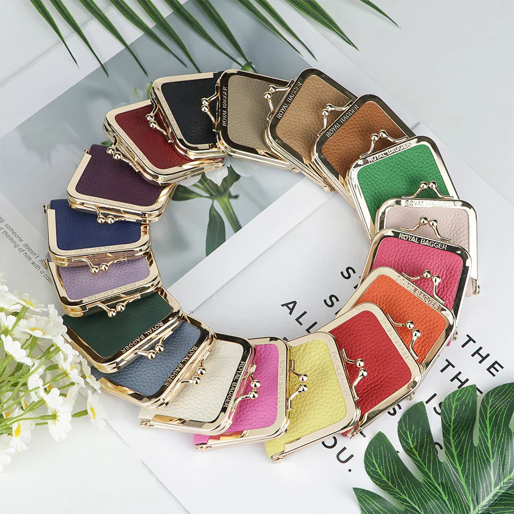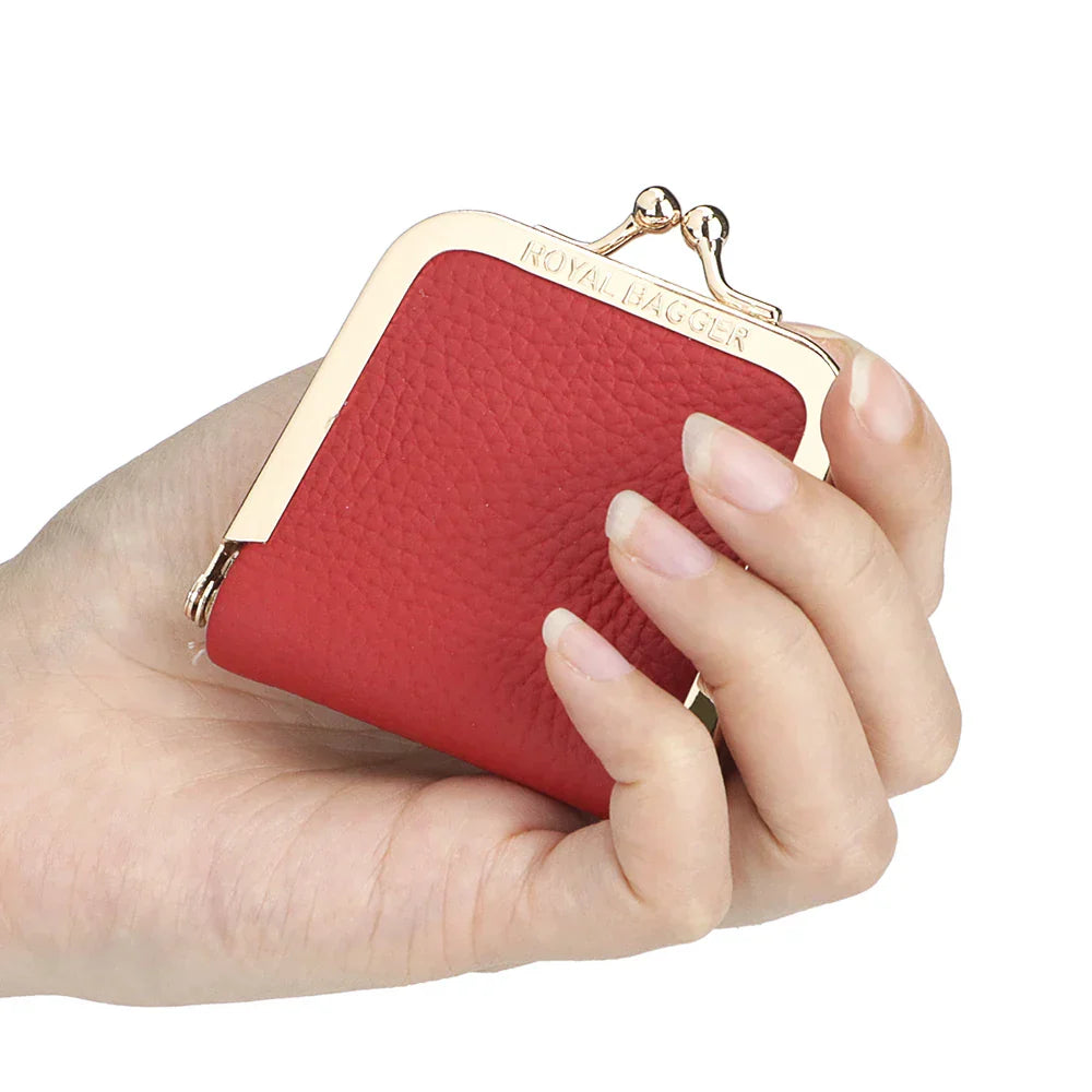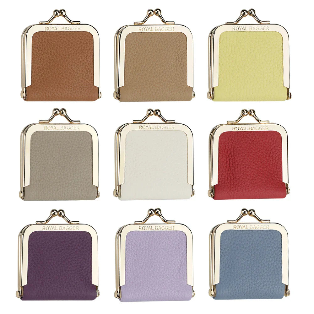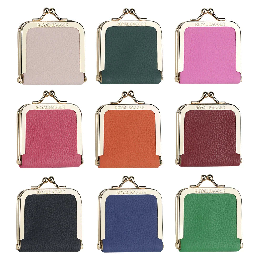 Royal Bagger Genuine Leather Mini Jewelry Box, Ring & Necklace Storage, Slim Coin Purse with Kiss Lock for Women 3120