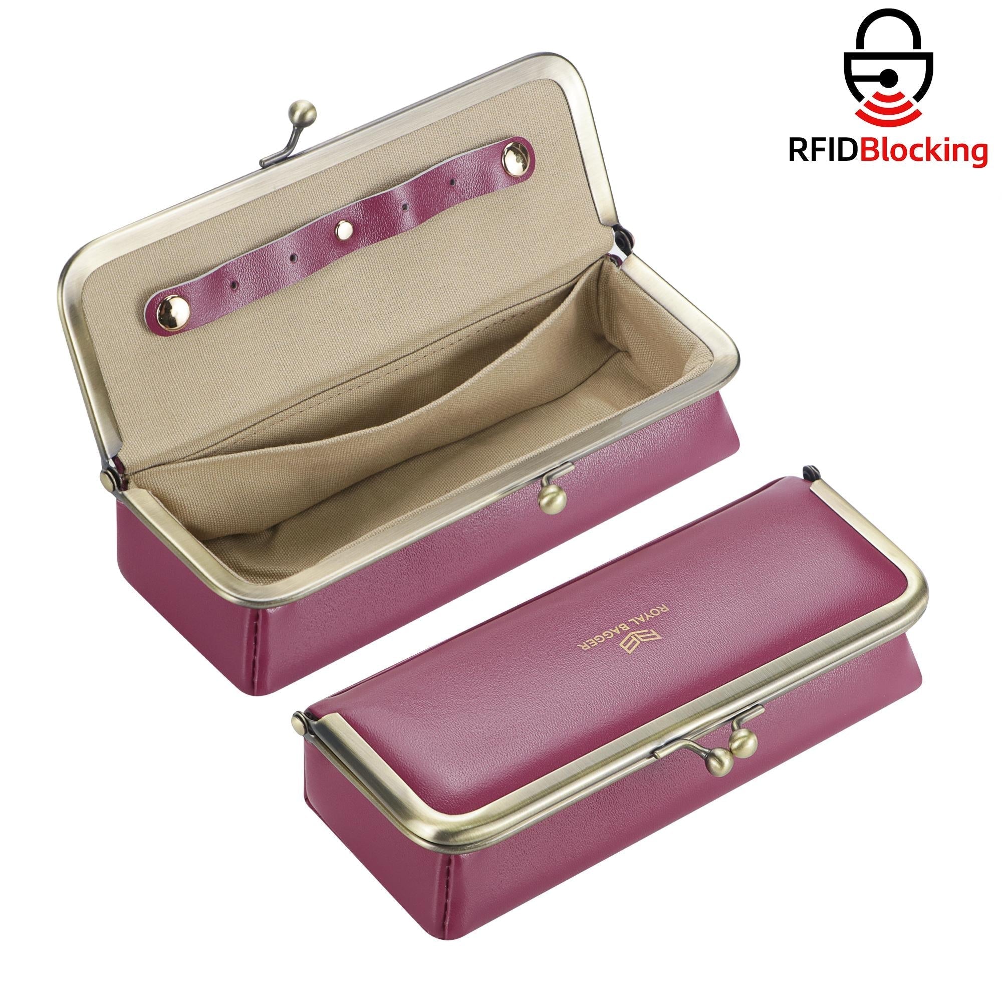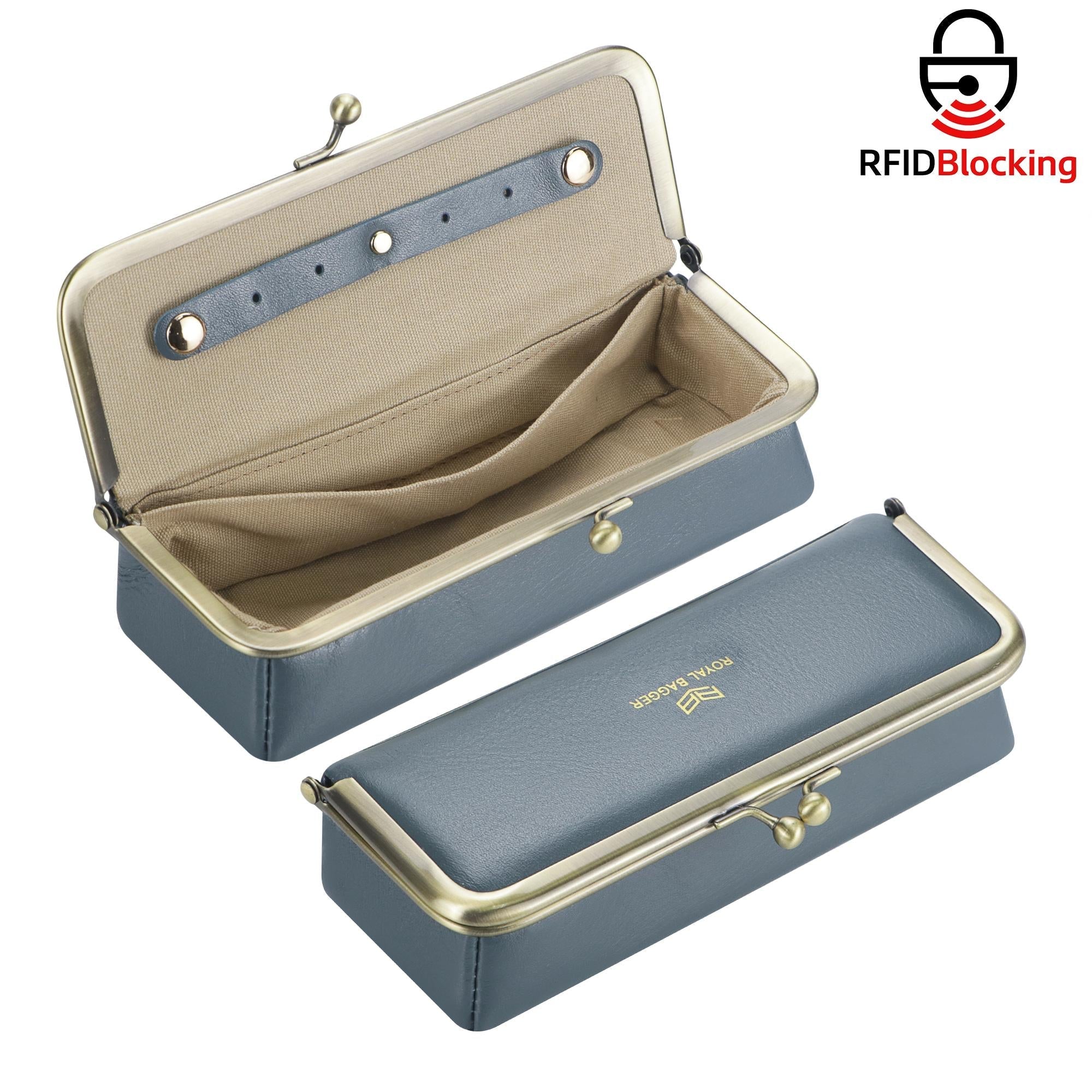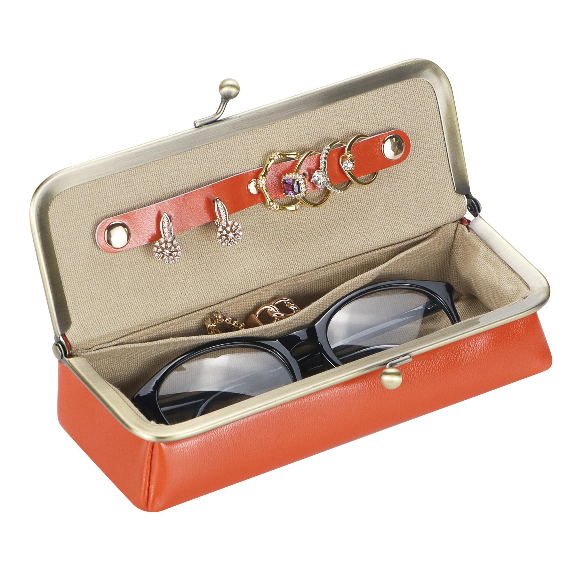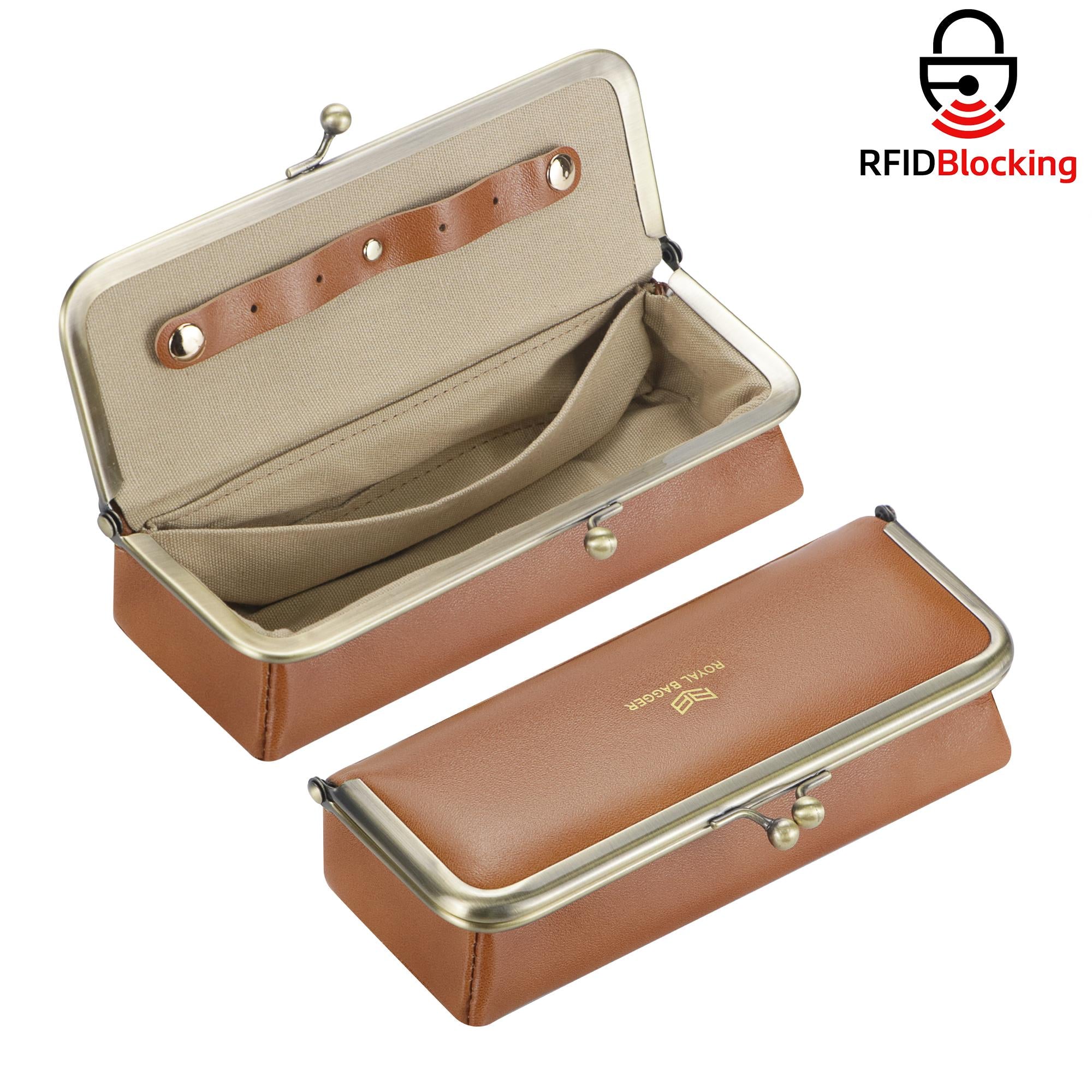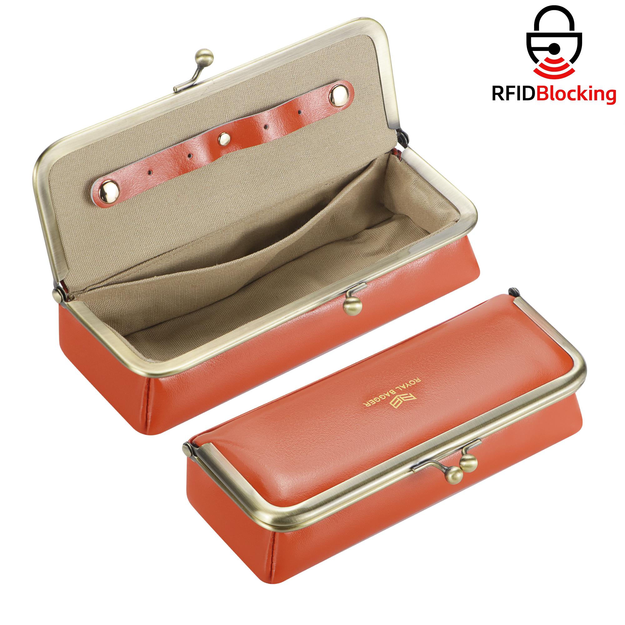 Royal Bagger Genuine Leather RFID Blocking Fashion Glasses Case, Pencil Bag with Kiss Lock, Organizer for Rings, Necklaces & Earrings for Women 3135