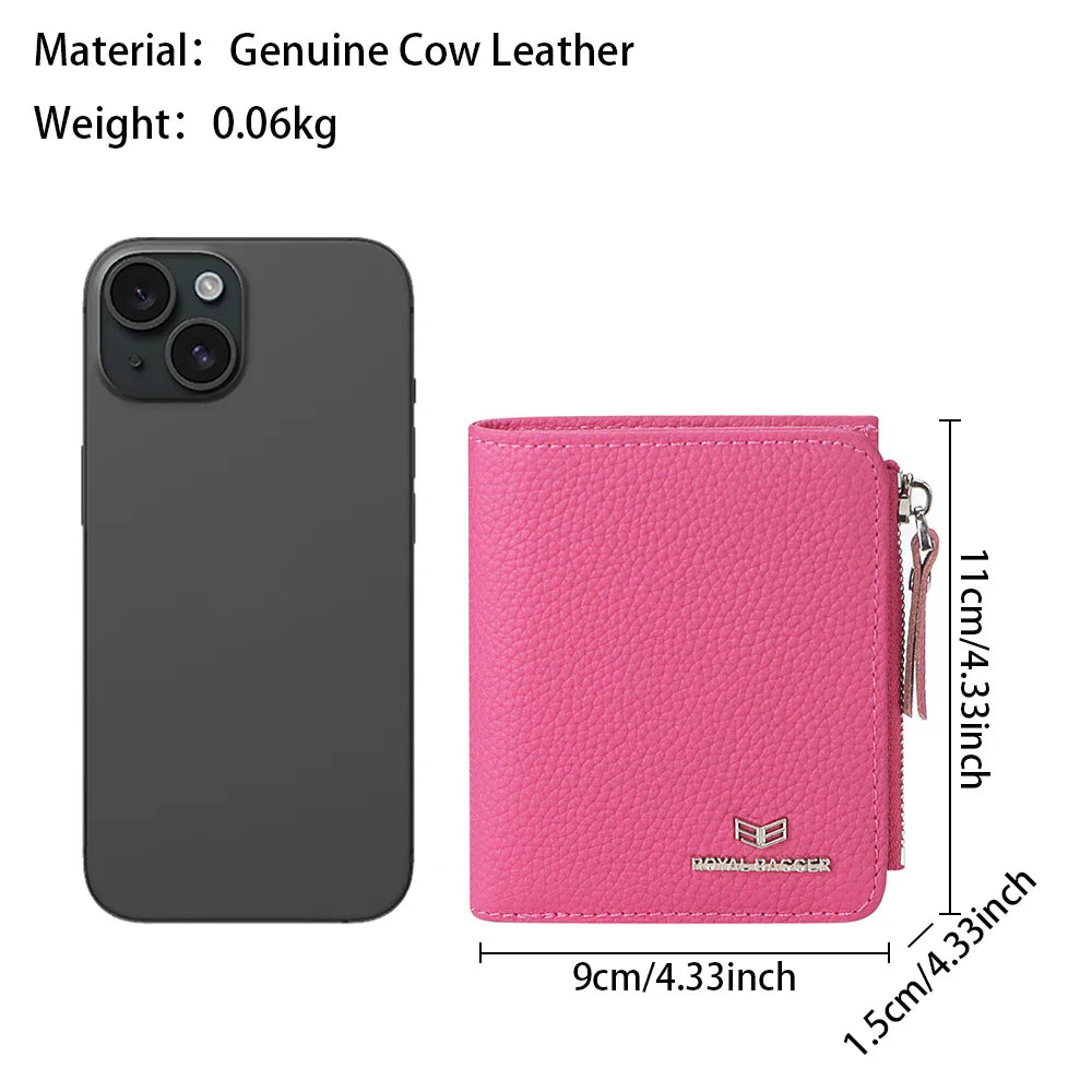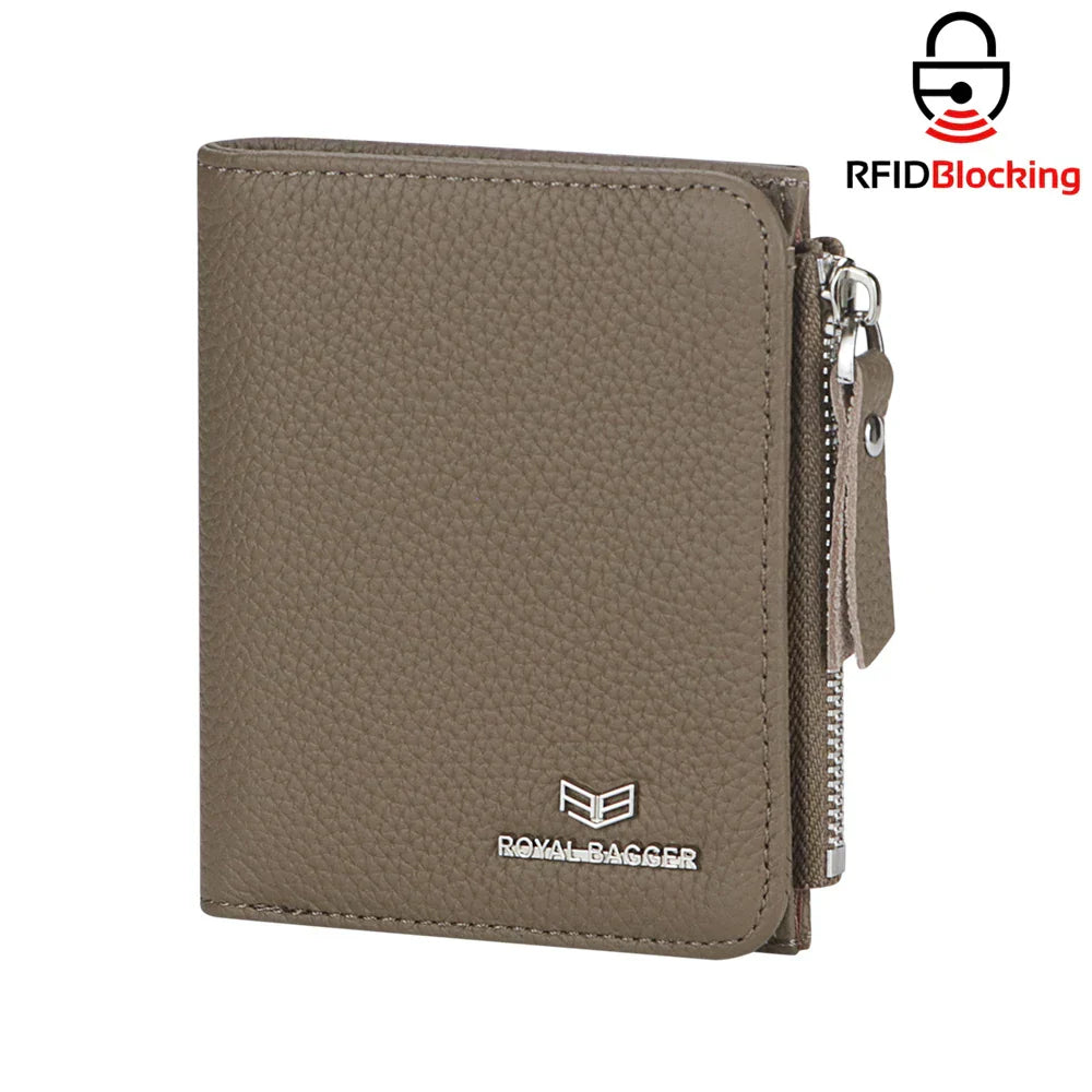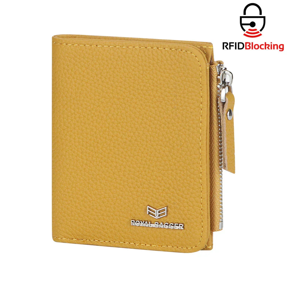 Royal Bagger RFID Blocking Genuine Leather Short Wallet for Women - Slim Bifold Coin Purse, Fashionable & Simple Design 3201
