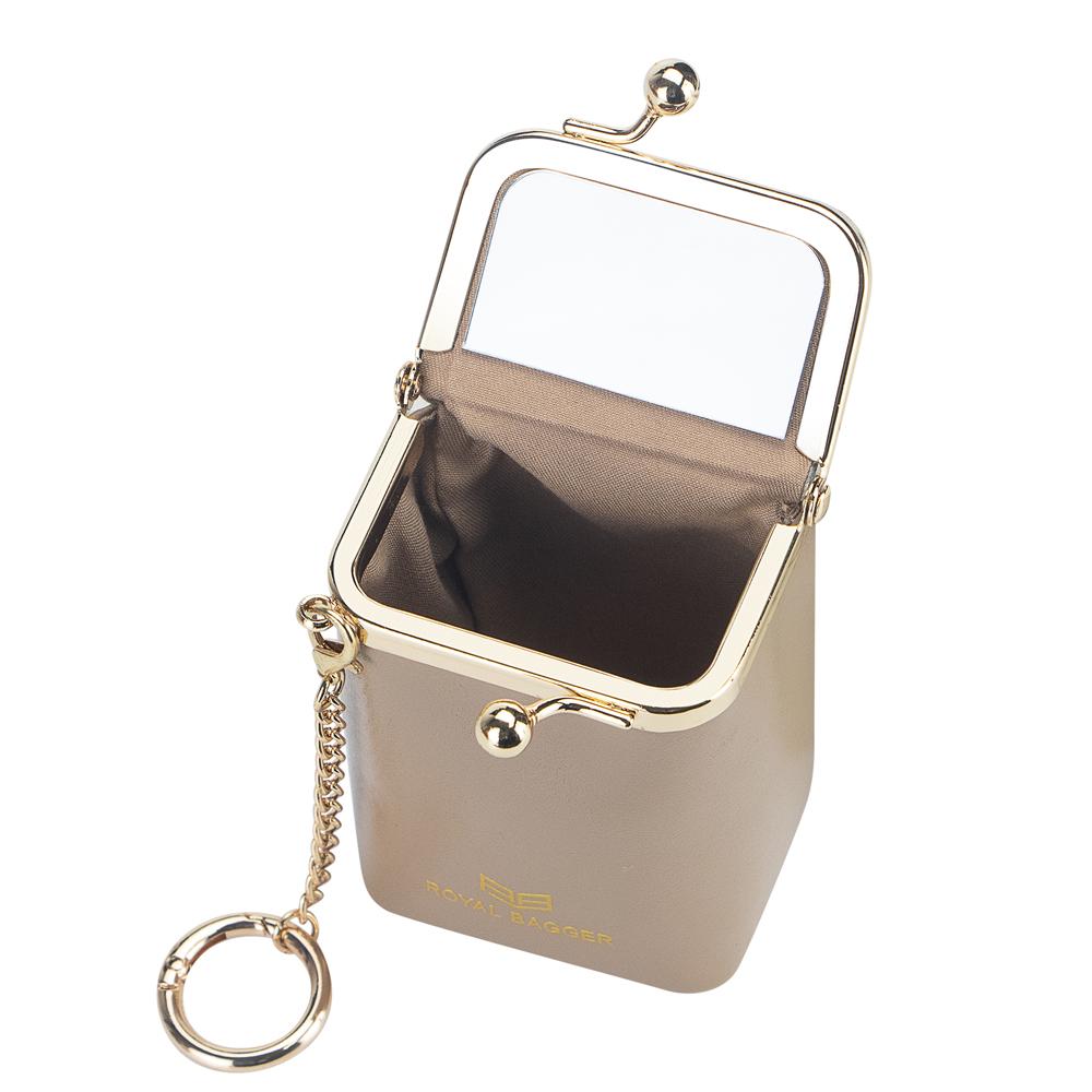 Royal Bagger Mini Chain Cosmetics Case for Women, Genuine Cow Leather Retro Kiss Lock Purse, Small Lipstick Makeup Bag with Mirror 3241