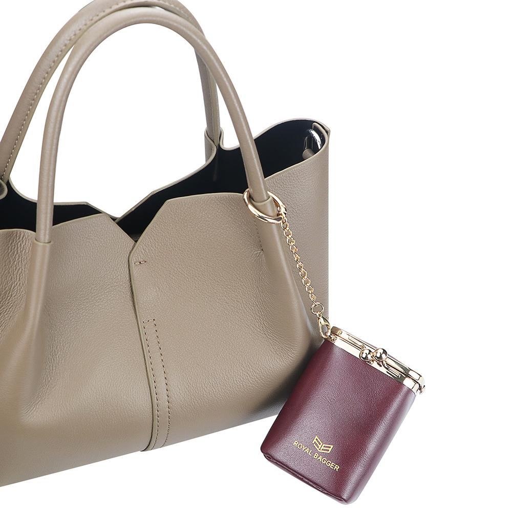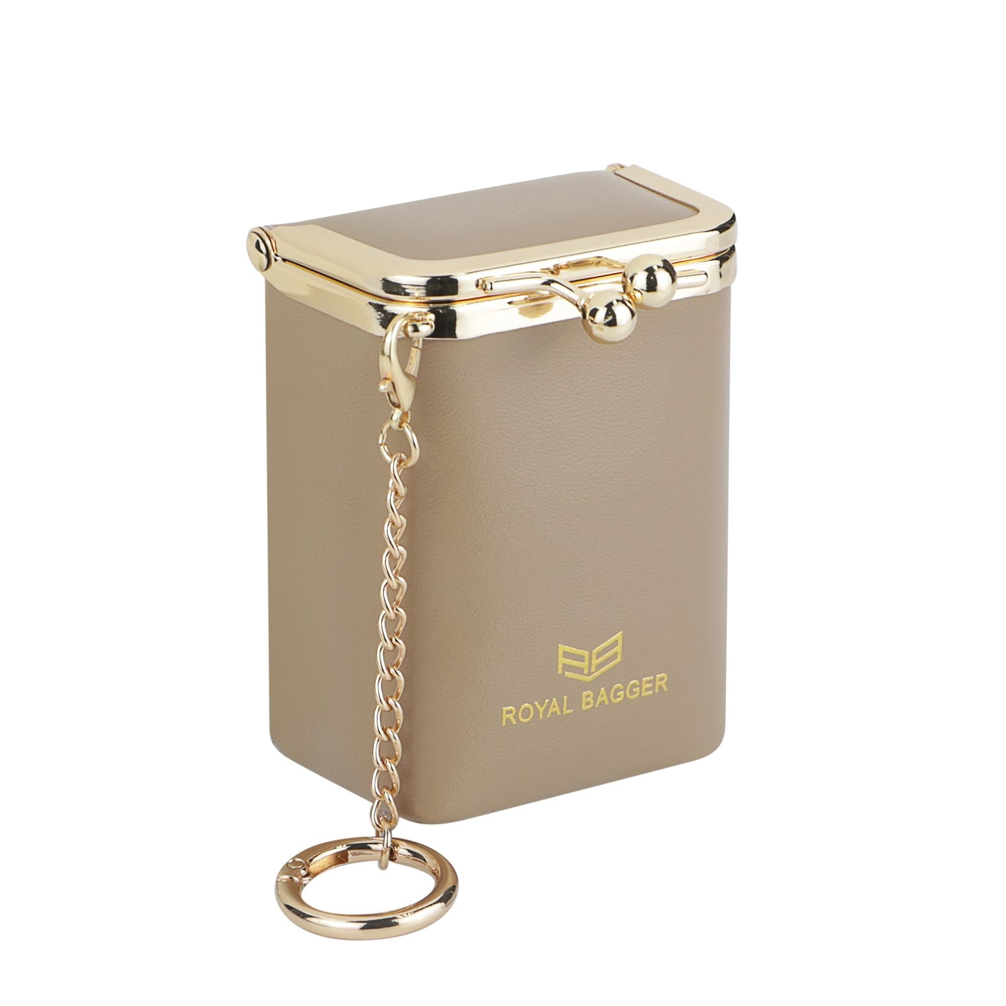 Elevate your accessory game with theRoyal Bagger Mini Chain Jewelry Box– a retro-inspired purse crafted fromgenuine cowhide leather. Designed with a classickiss lock closureand a sleekmetal chain, this stylish mini bag blends vintage charm with modern practicality. Ideal for holding jewelry, coins, or small daily essentials, it’s perfect for travel or an elegant night out. The built-incompact mirror