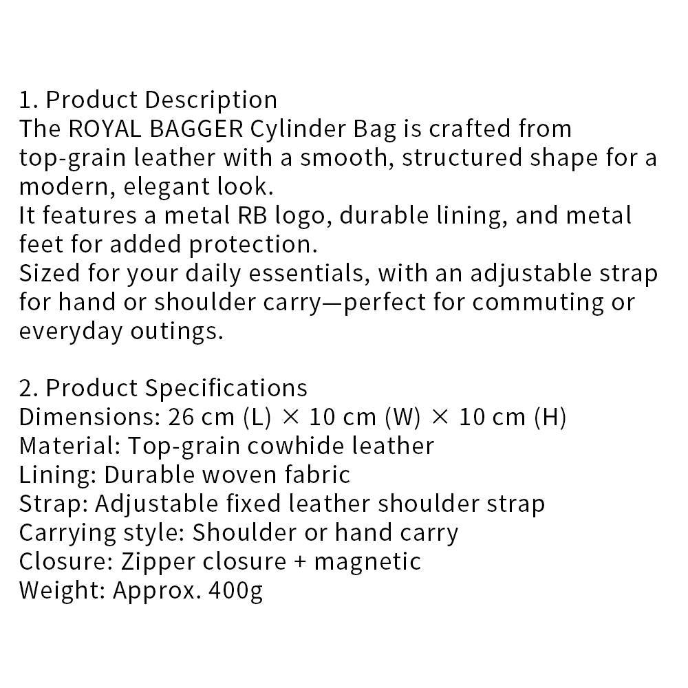 Royal Bagger Genuine Cow Leather Shoulder Handbag for Women, Cylinder Purse with Adjustable Strap, Fashion Women's Bag 3249