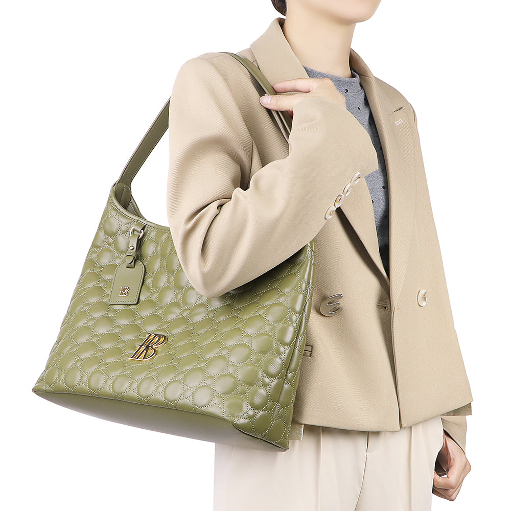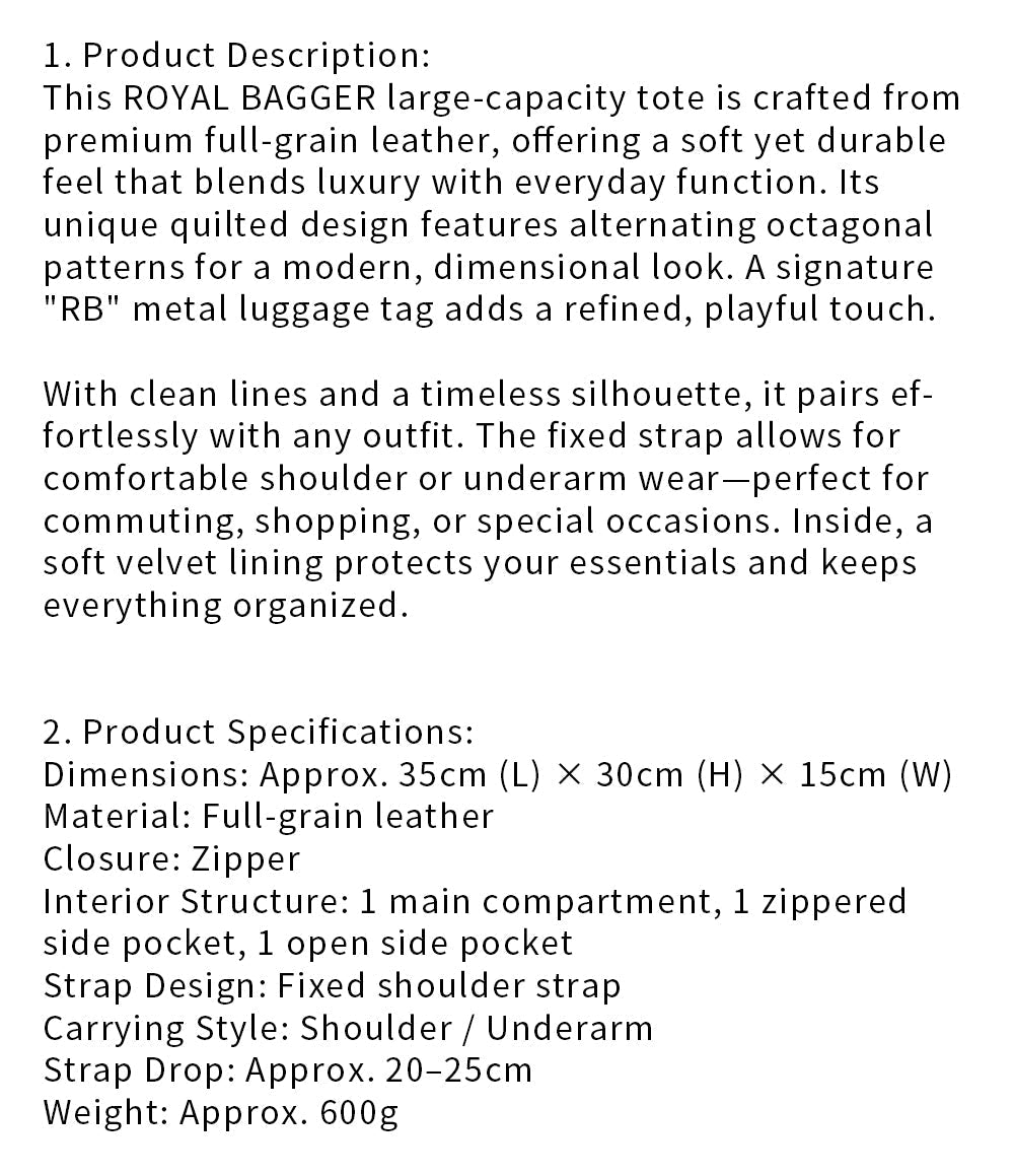 Royal Bagger Genuine Cow Leather Quilted Tote Bag for Women, Large Capacity Handbag, Fashion Shoulder Underarm Purse 3269