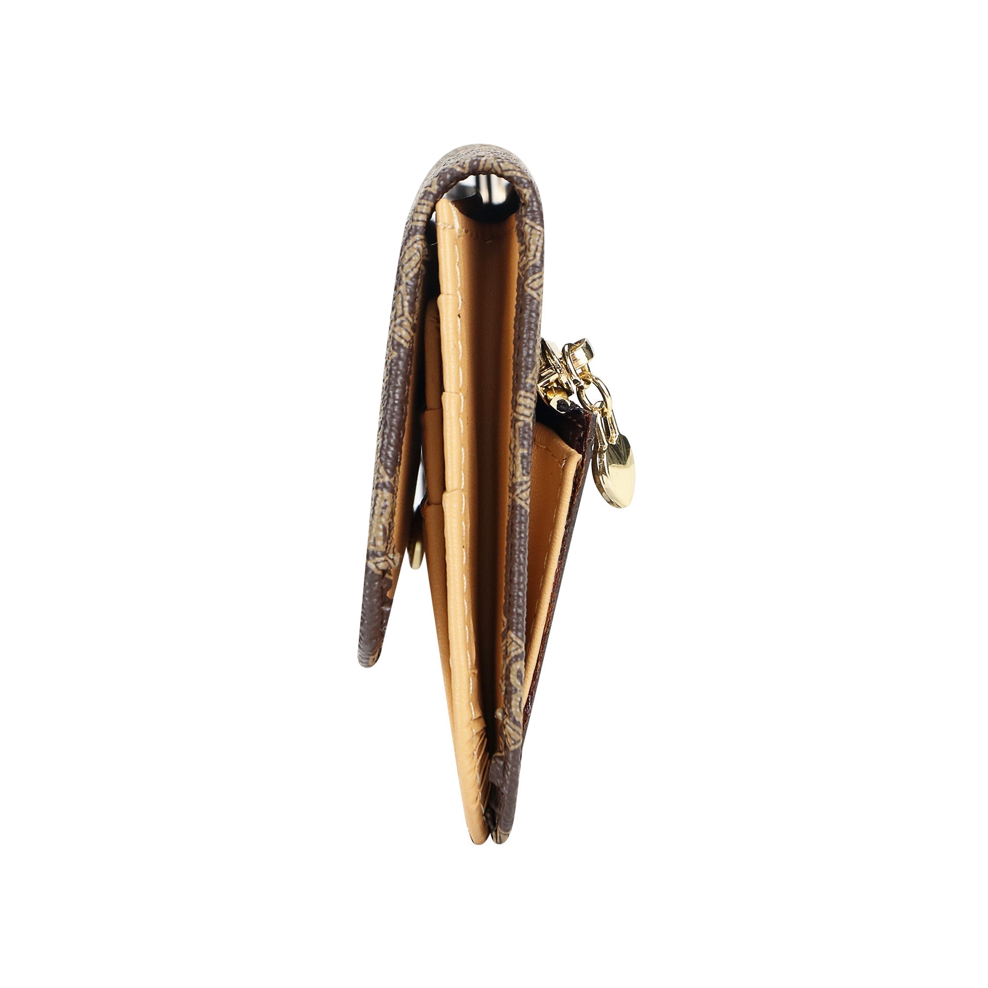 Royal Bagger RFID Women's Multi-Card Slots Wallet – Signature Coated Canvas & Vegetable-Tanned Cowhide Leather Credit Card Holder, Coin Purse with Keychain 3443