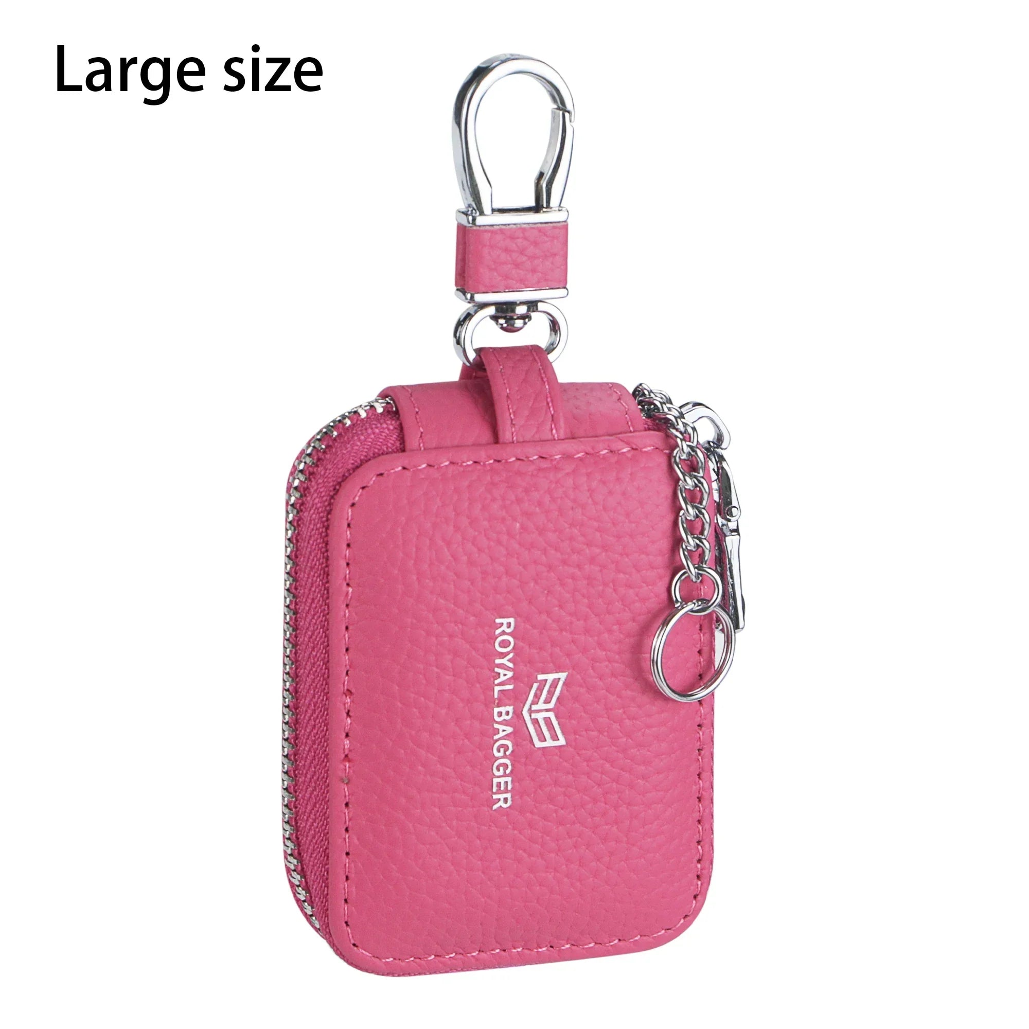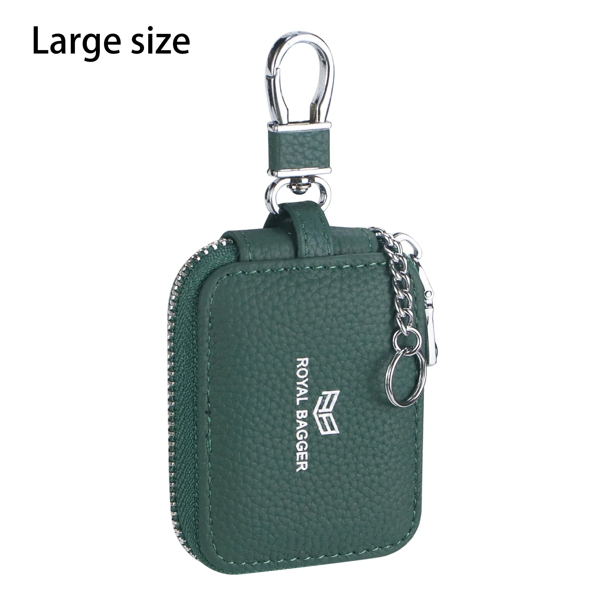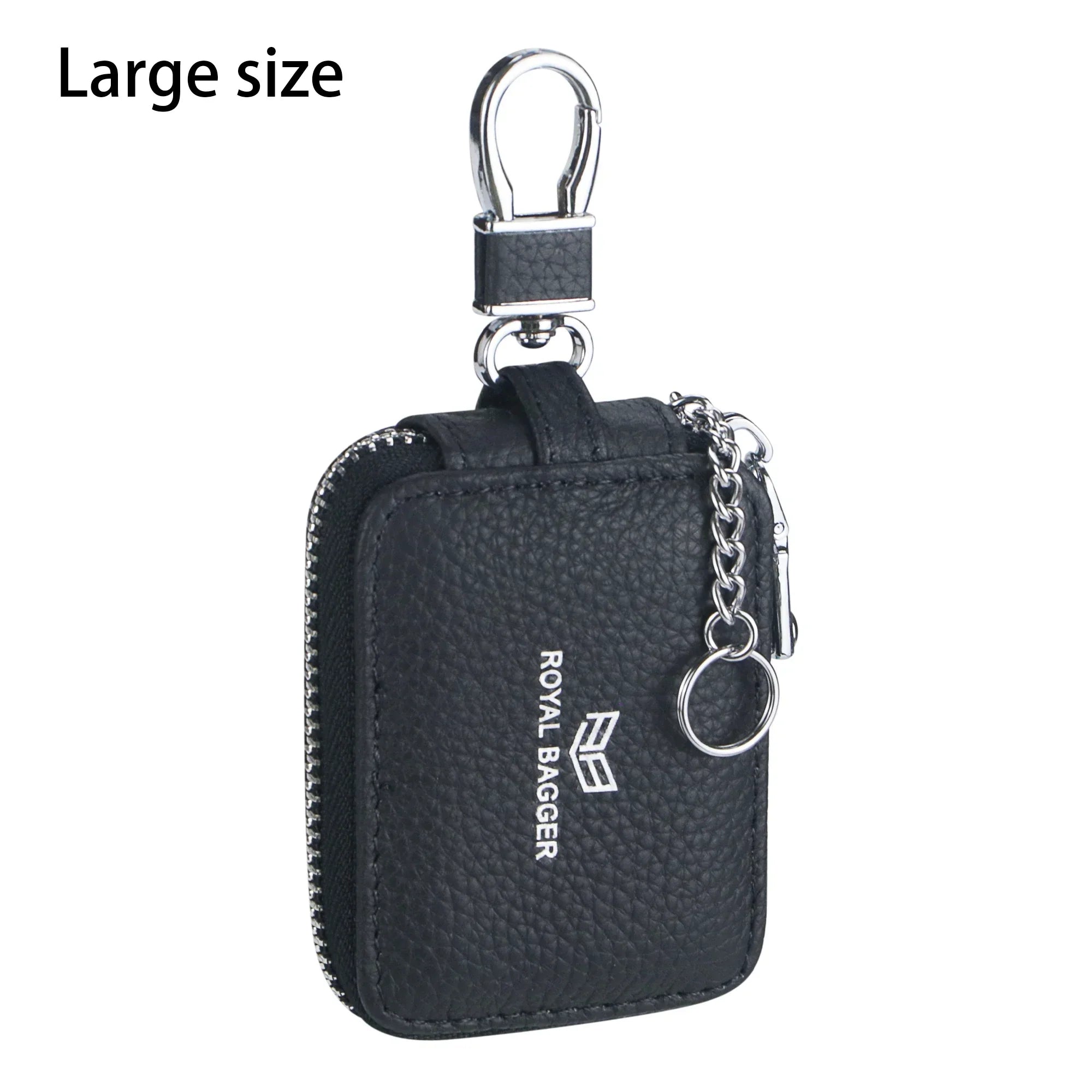 Royal Bagger Mini Earphone Bag Genuine Leather Zipper Key Wallet with Keychain, Portable Headphone Case for Men & Women 3901