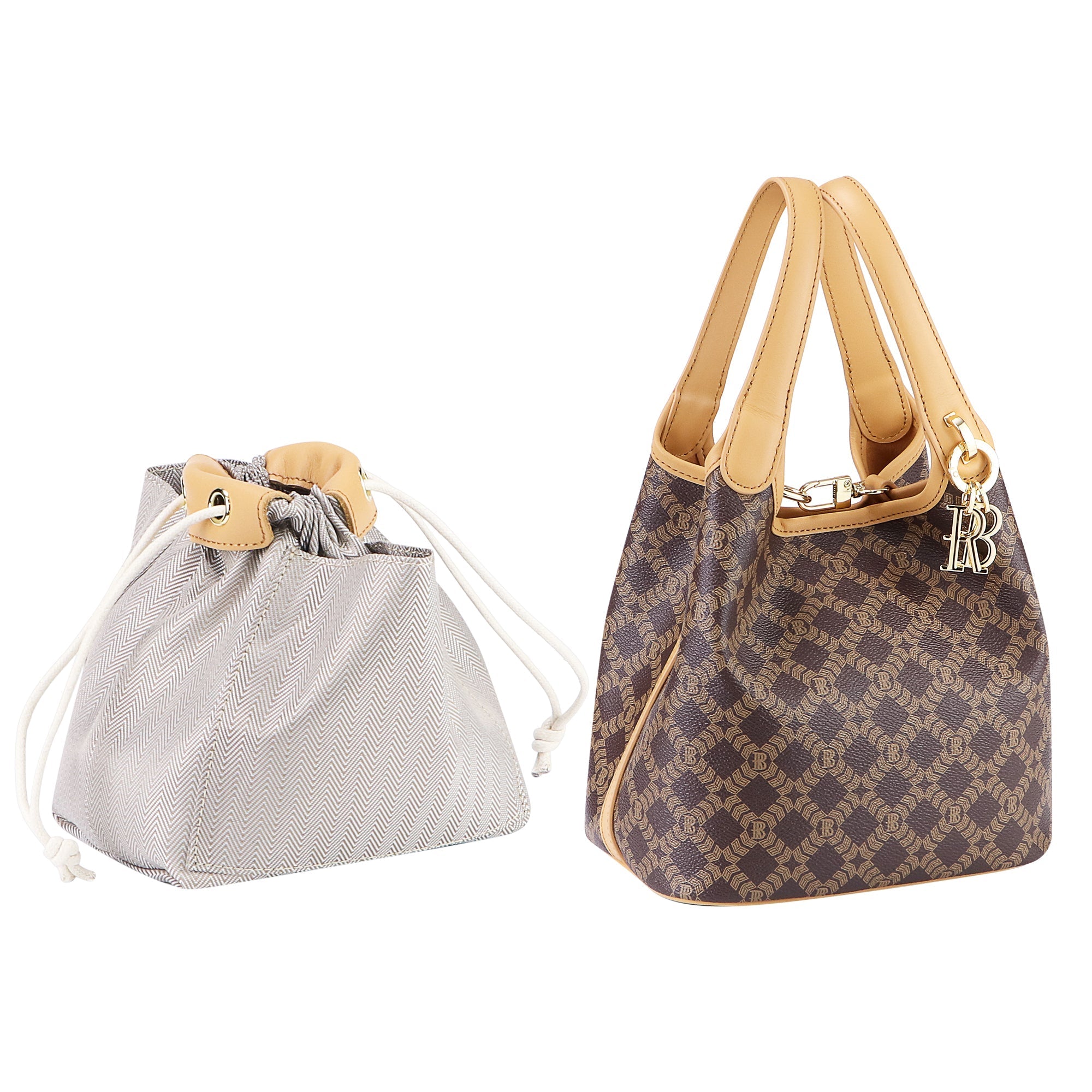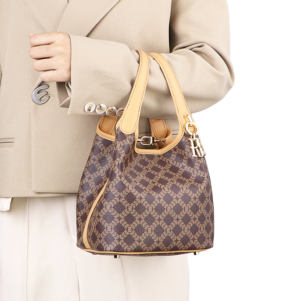 Royal Bagger Signature Coated Canvas & Vegetable-Tanned Cowhide Leather Bucket Bag, Casual Handbag for Women, Tote Bags 4260