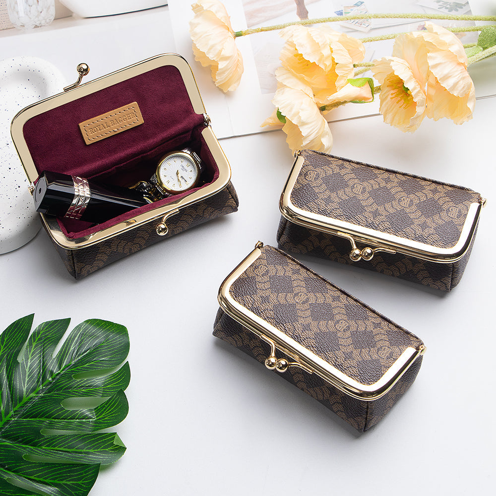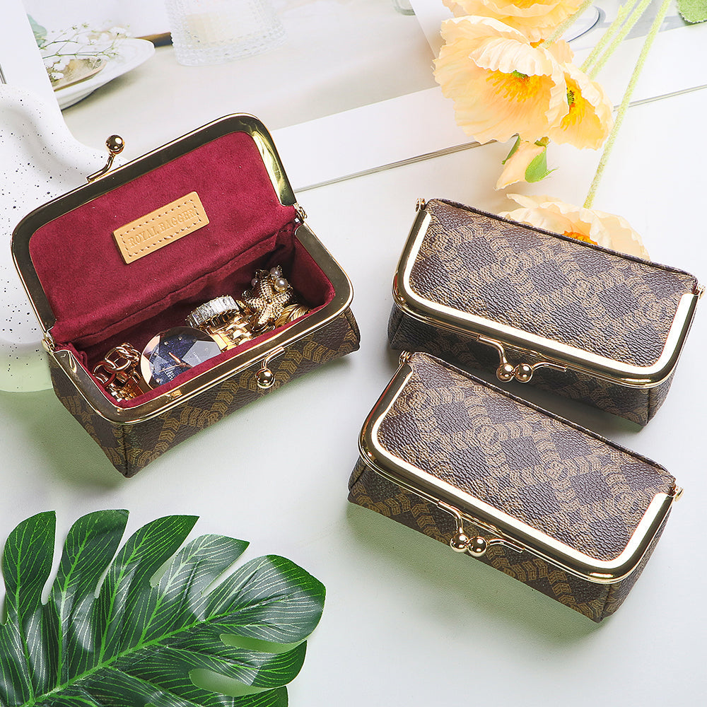 Royal Bagger Mini Jewelry Box – RFID Coated Canvas & Leather Organizer for Rings, Necklaces & Earrings, Women's Kiss Lock Purse 5125