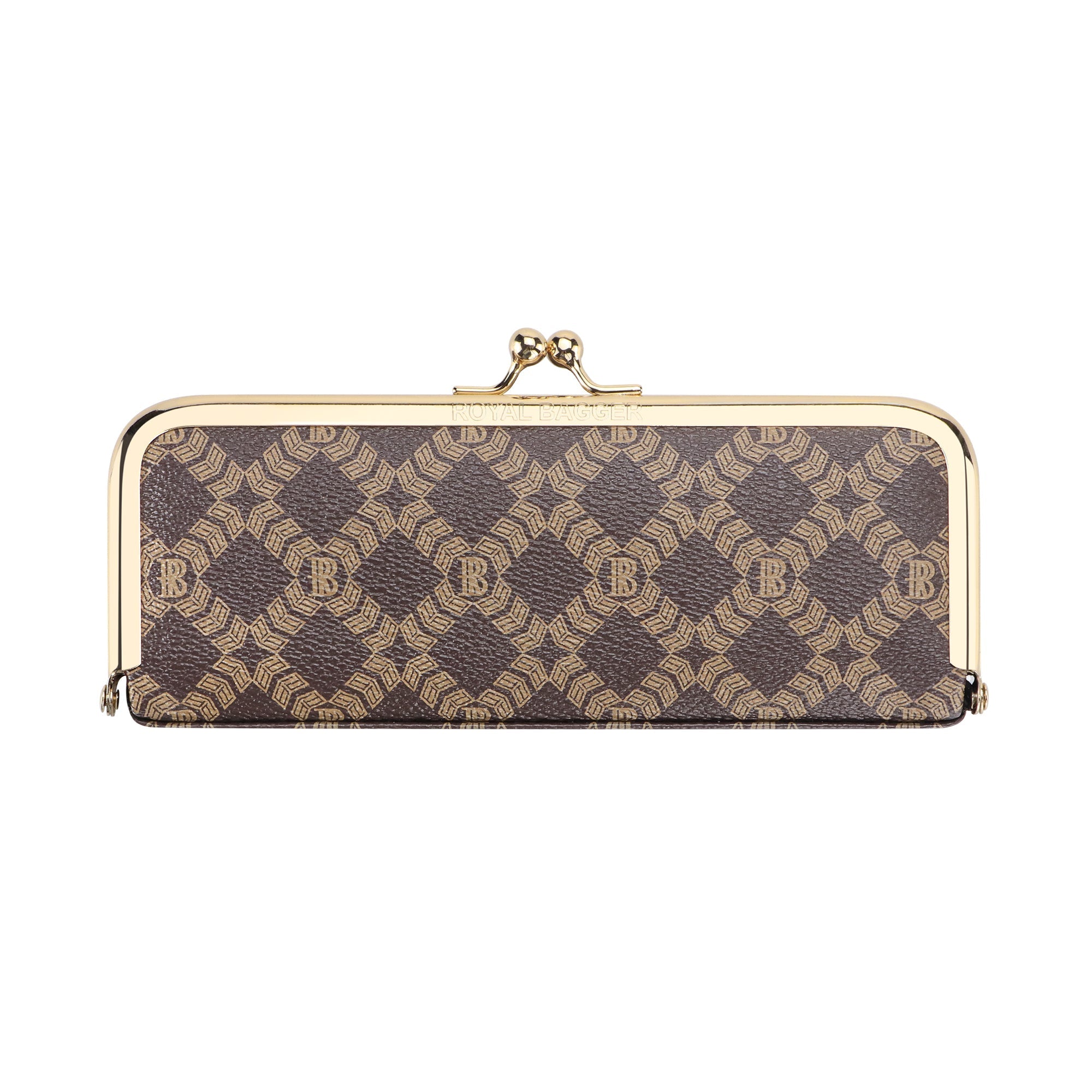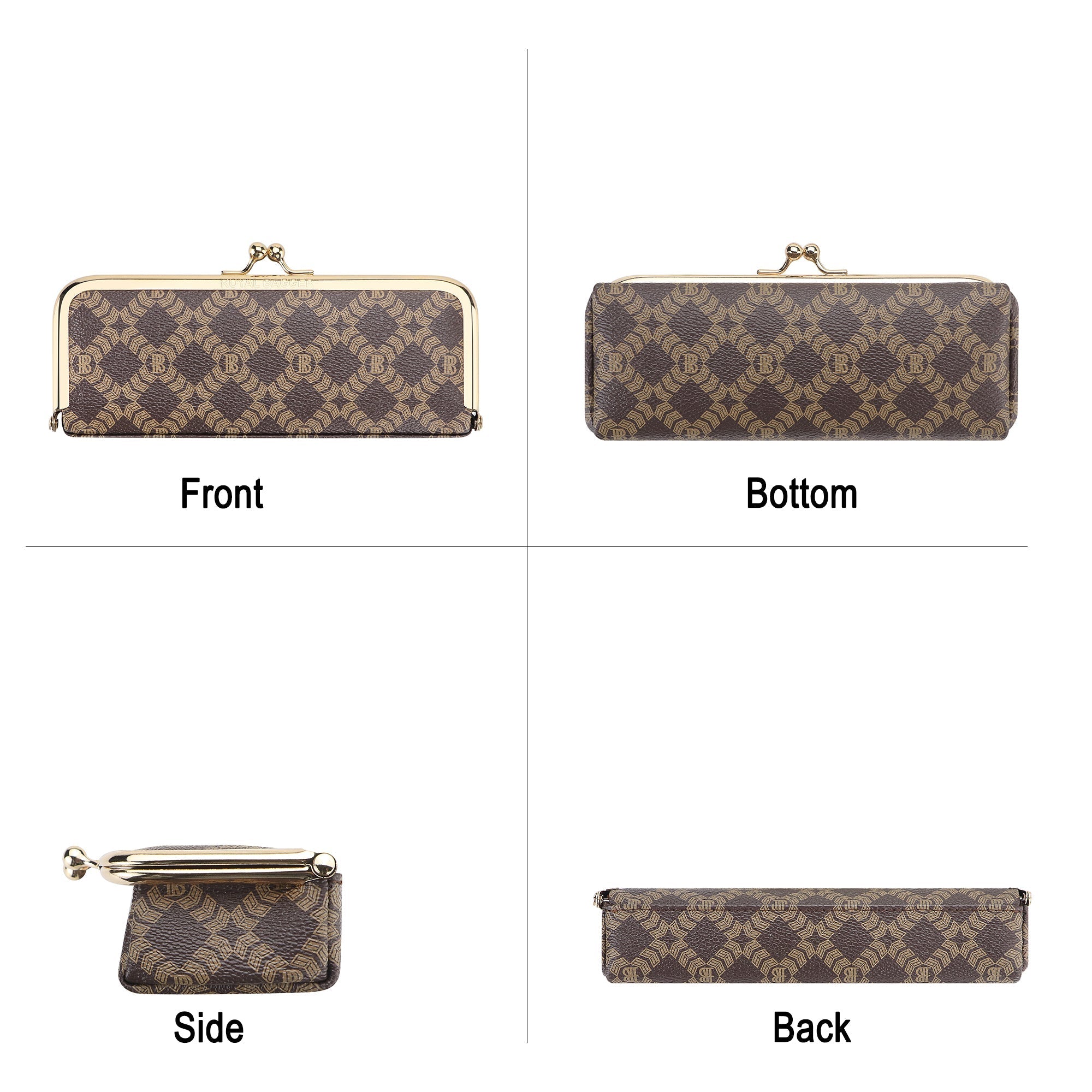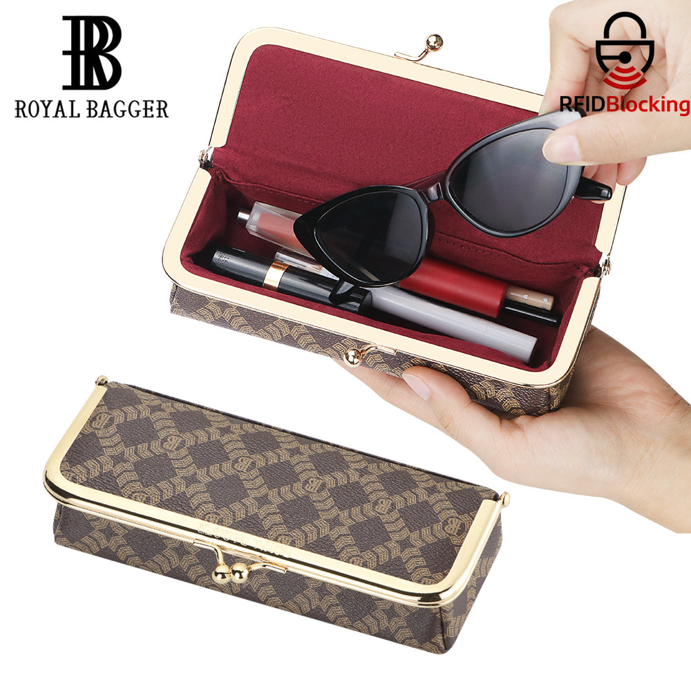 Royal Bagger Women's Eyeglass Case & Coin Purse, RFID Pencil Bag with Kiss Lock, Coated Canvas & Vegetable-Tanned Leather 5135