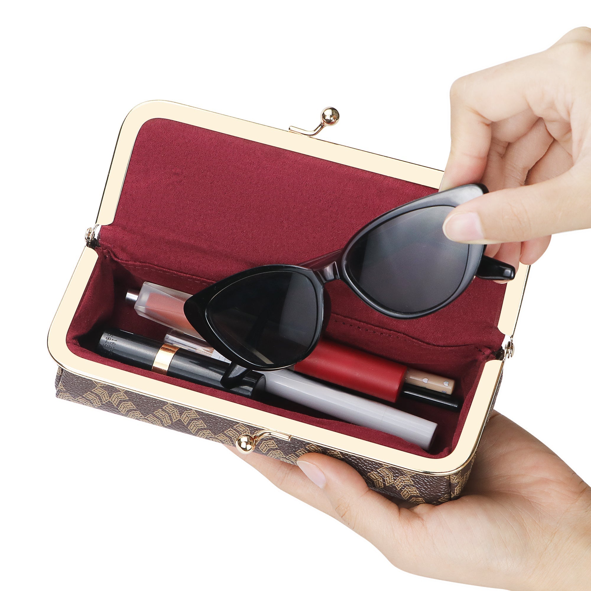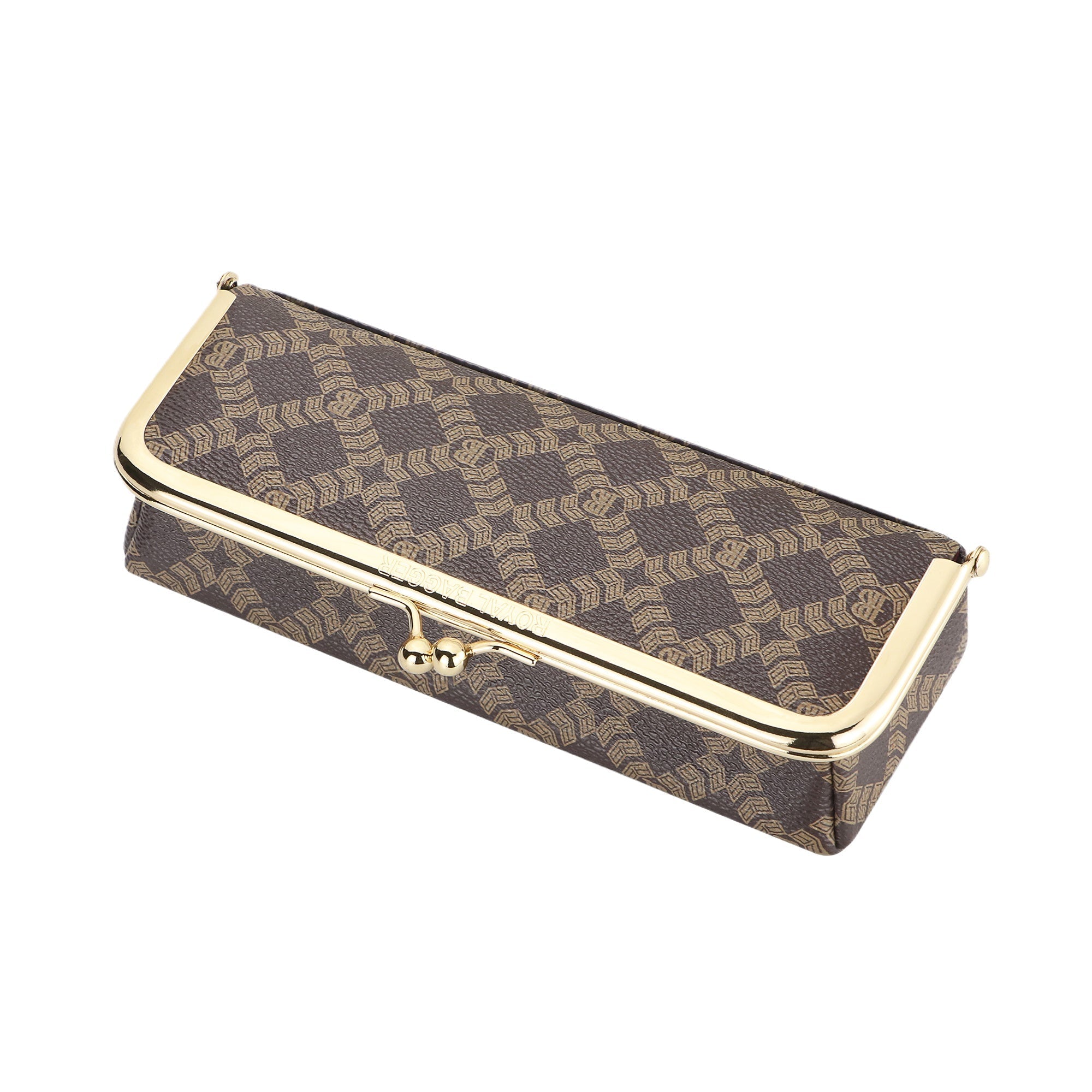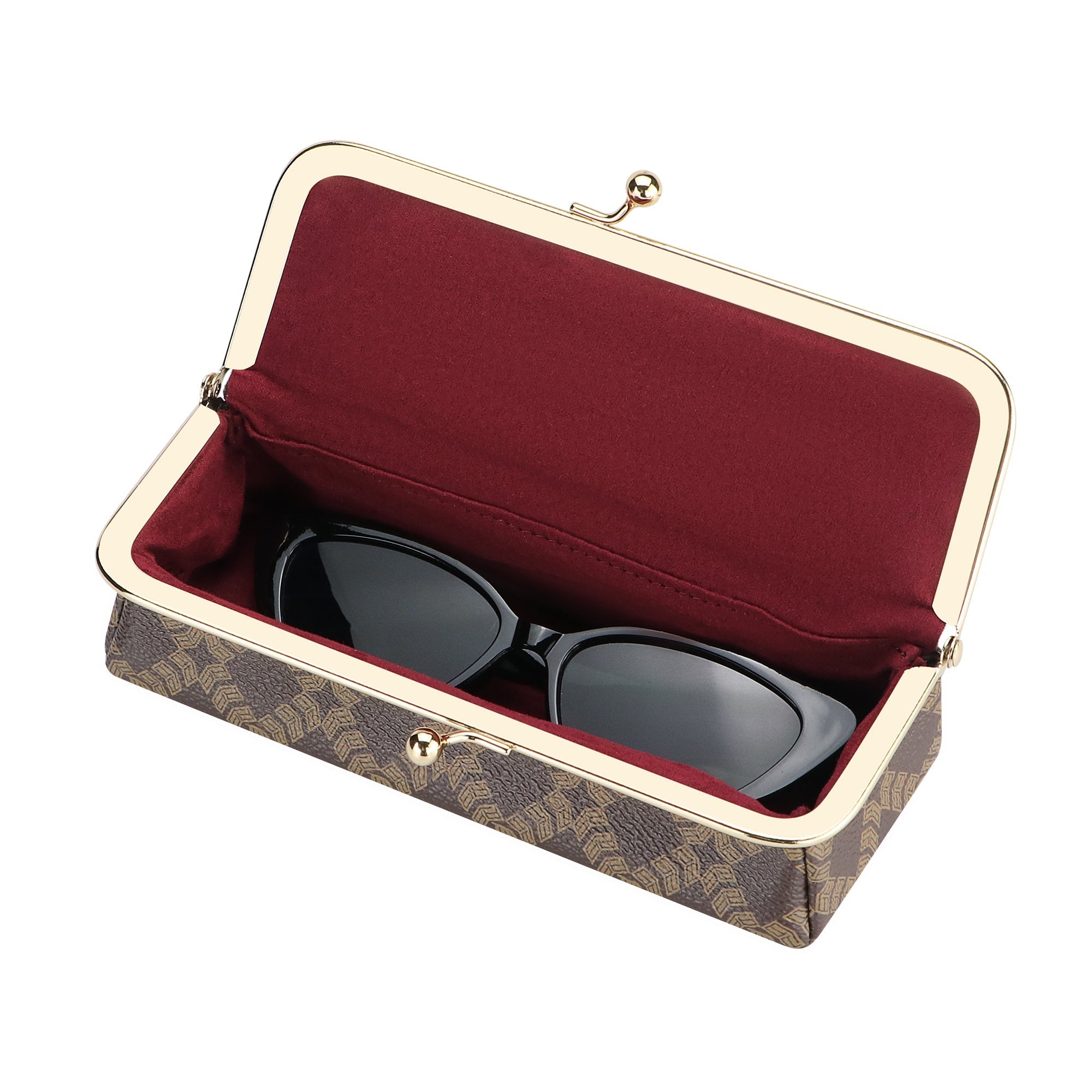 Royal Bagger Women's Eyeglass Case & Coin Purse, RFID Pencil Bag with Kiss Lock, Coated Canvas & Vegetable-Tanned Leather 5135