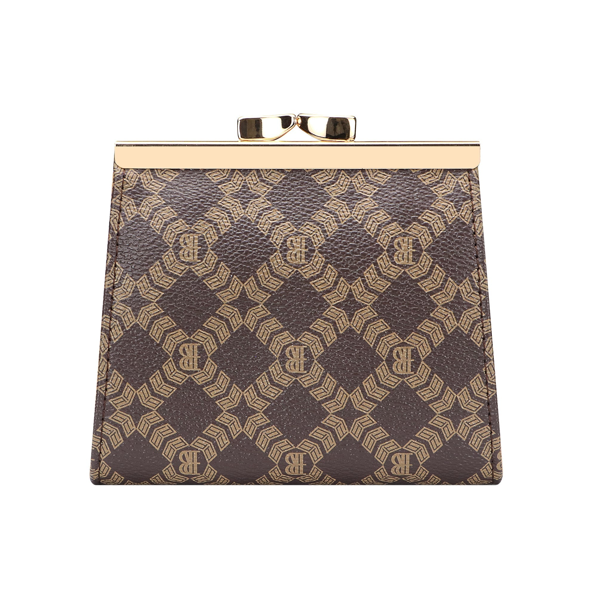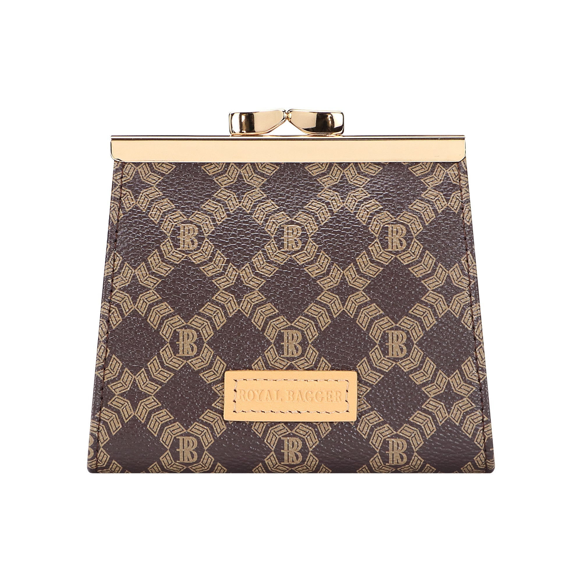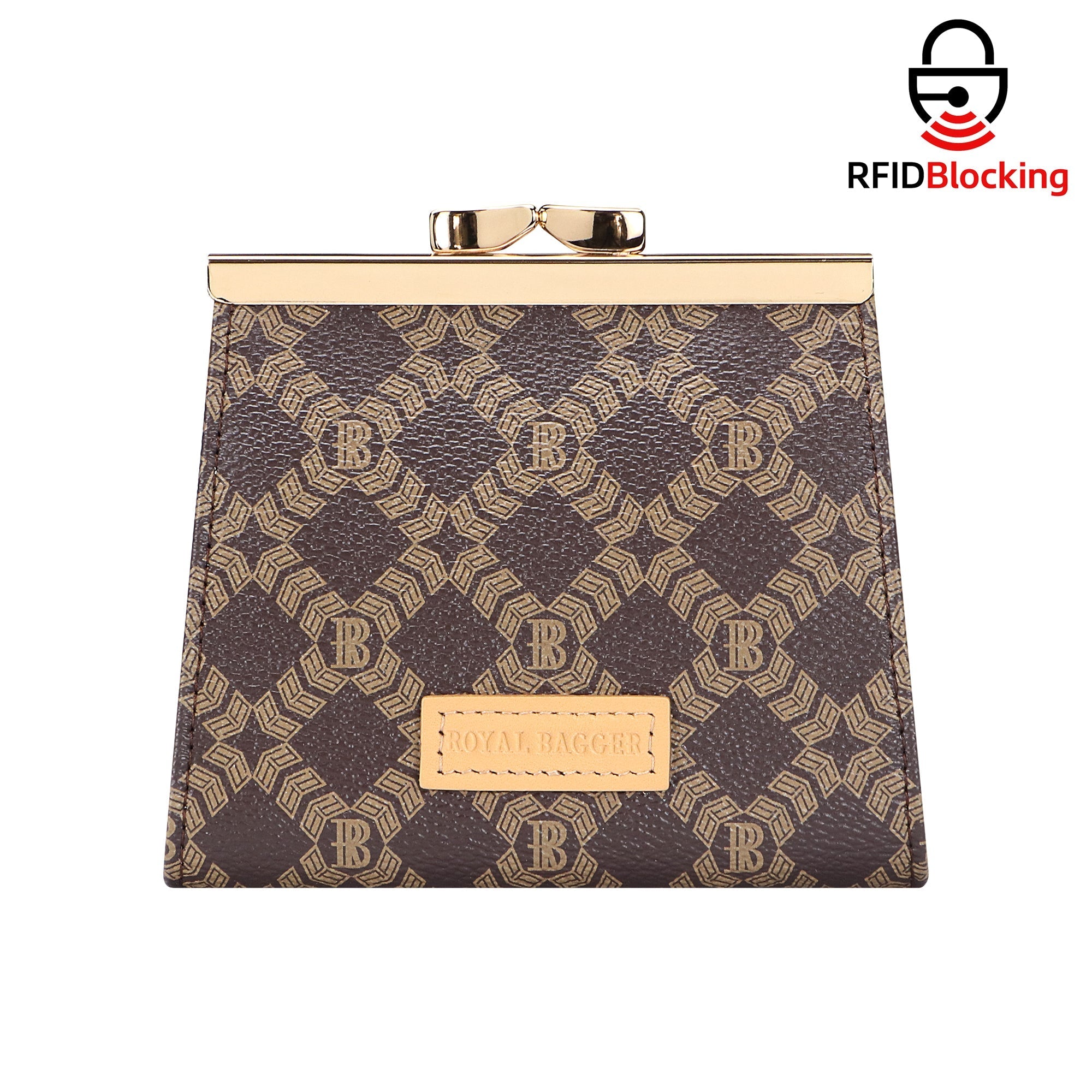 Royal Bagger Women’s RFID Credit Card Holder Wallet – Vintage Coin Purse with Signature Coated Canvas & Vegetable-Tanned Cowhide Leather, Kiss Lock Short Wallet 5242