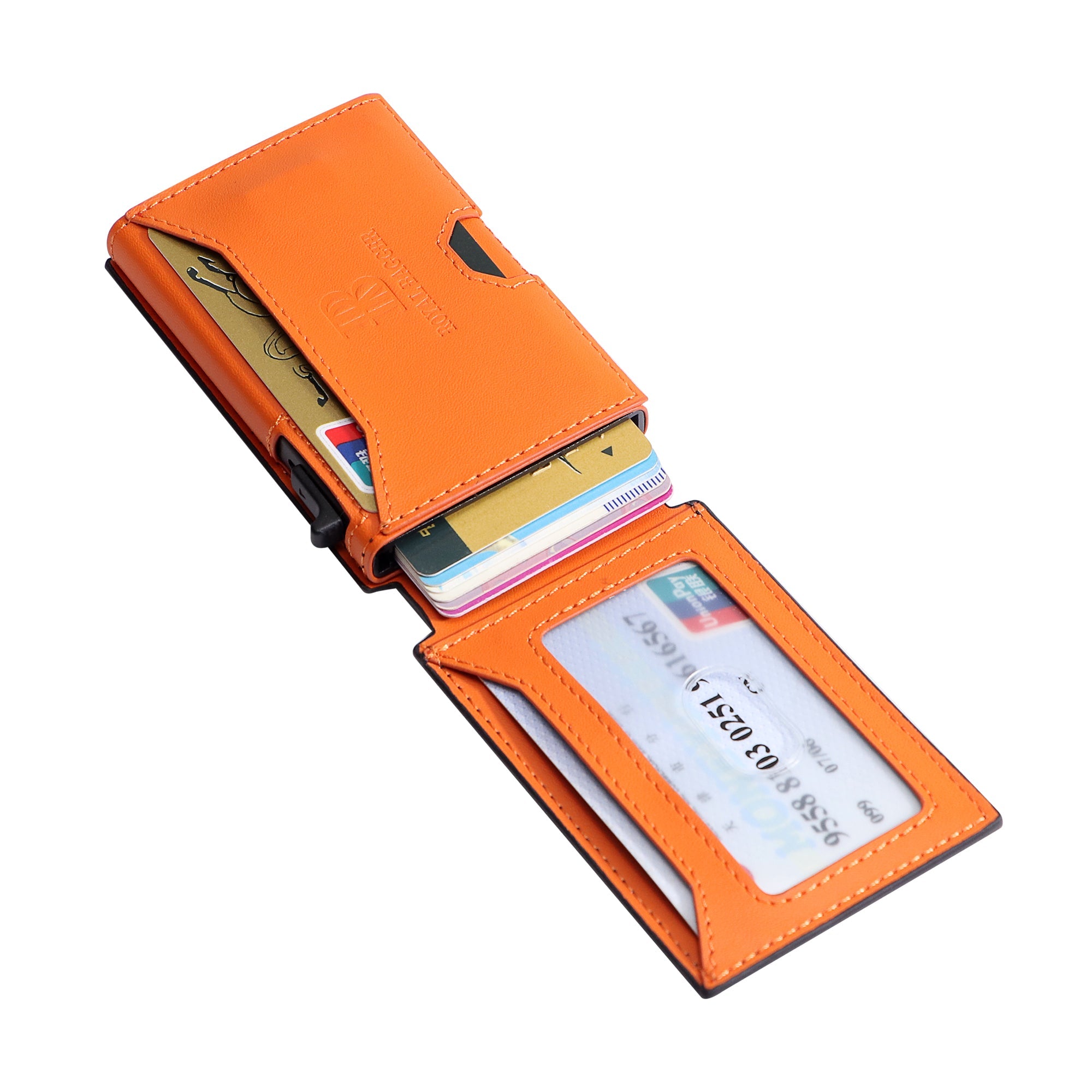 Royal Bagger Men’s Minimalist Pop-Up Metal & Genuine Cow Leather Card Holder Case, RFID Blocking Slim Wallet with Magnetic Closure, Lightweight Carbon Fiber Travel Wallet 5246
