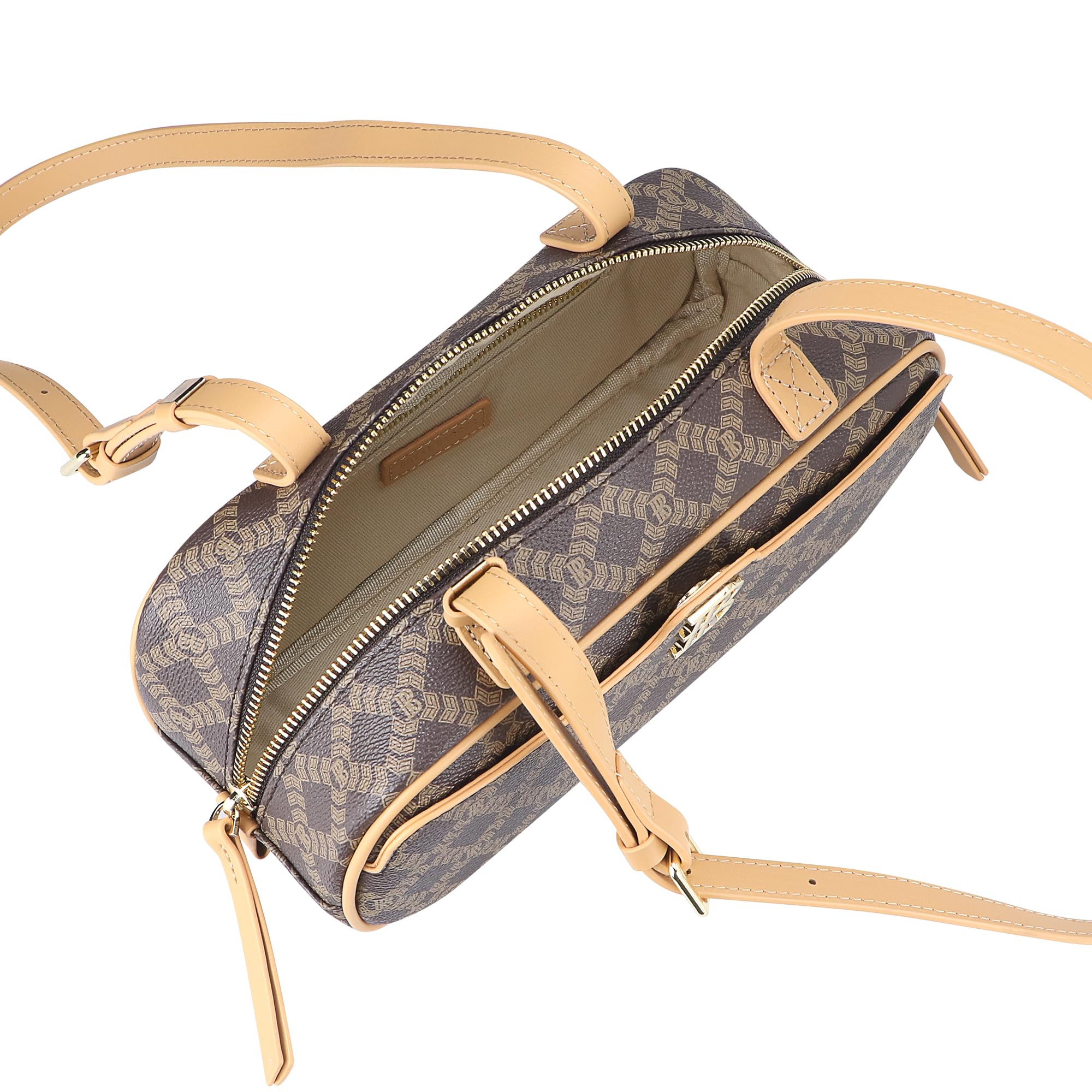 Royal Bagger Coated Canvas & Vegetable-Tanned Leather Shoulder Bag for Women – Retro Cylinder Purse, Adjustable Strap 5249