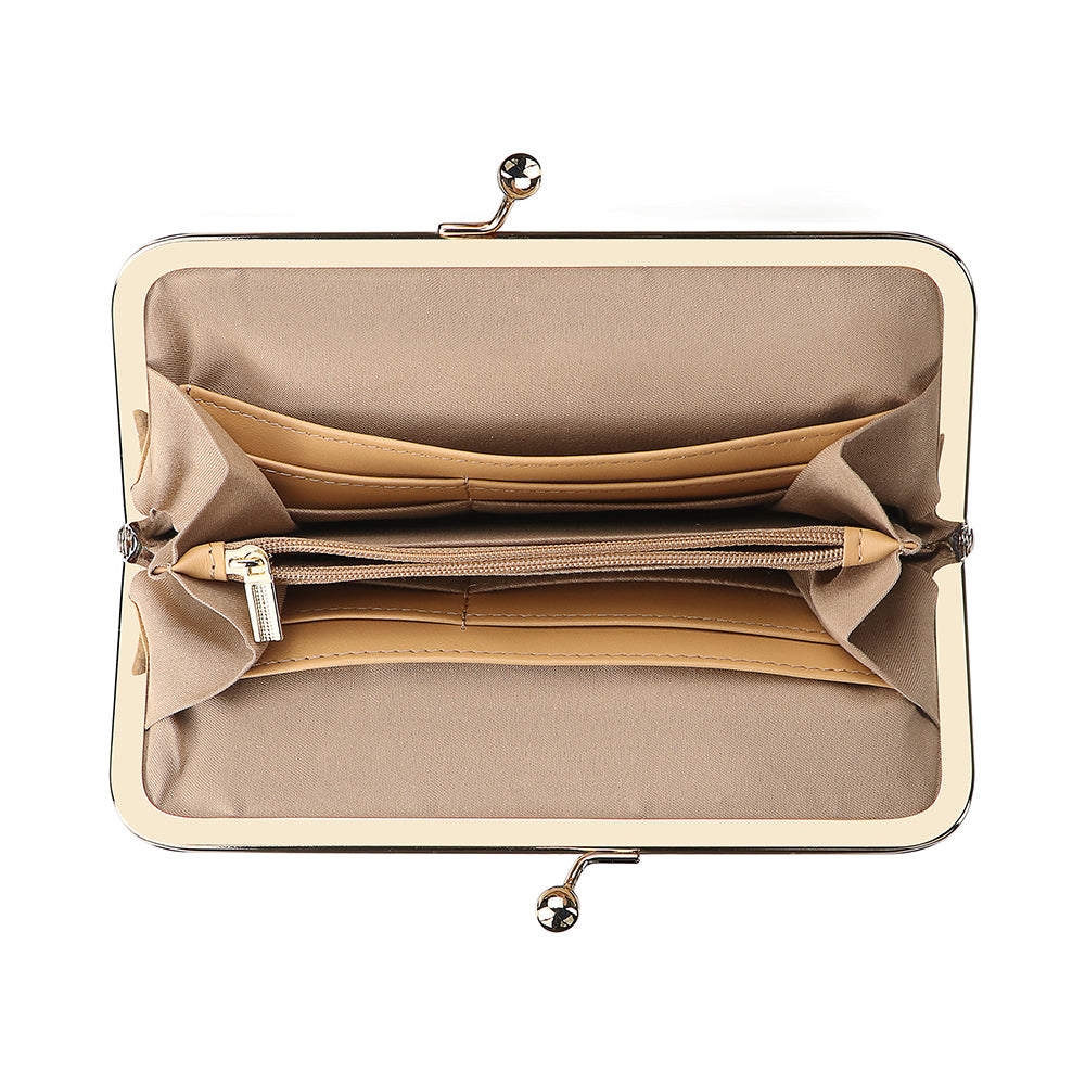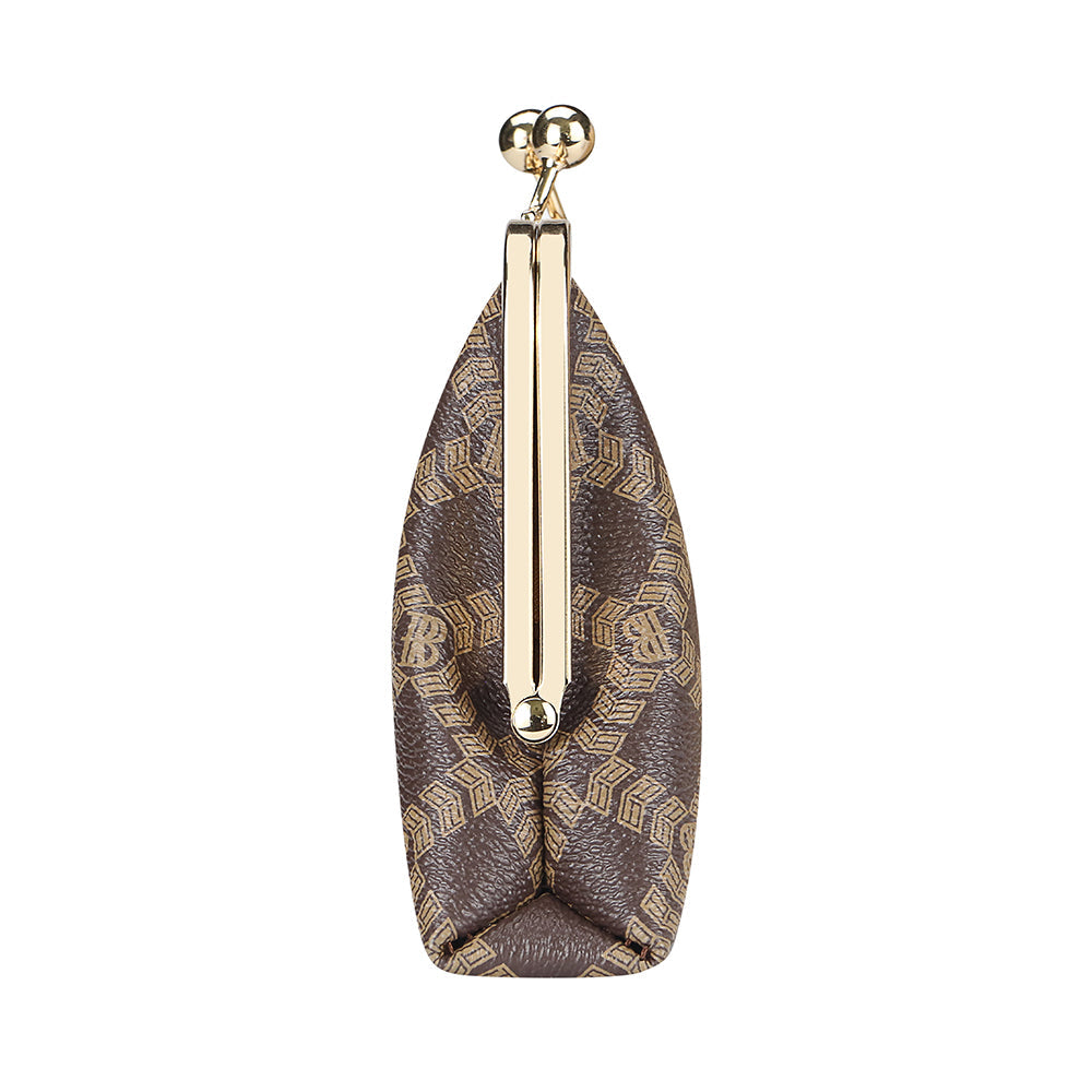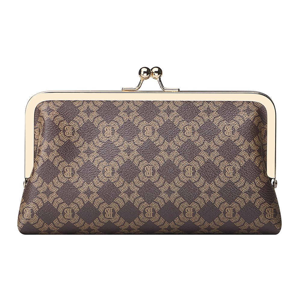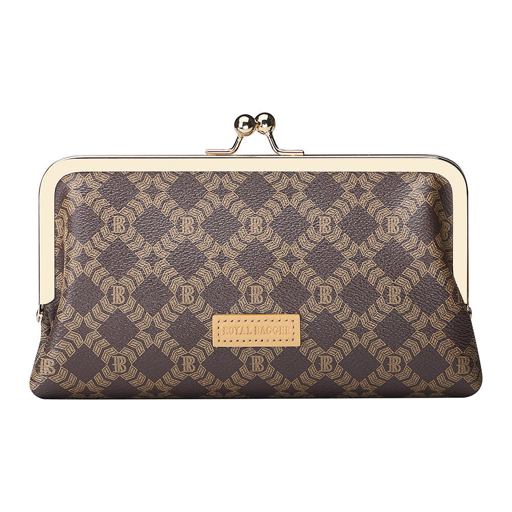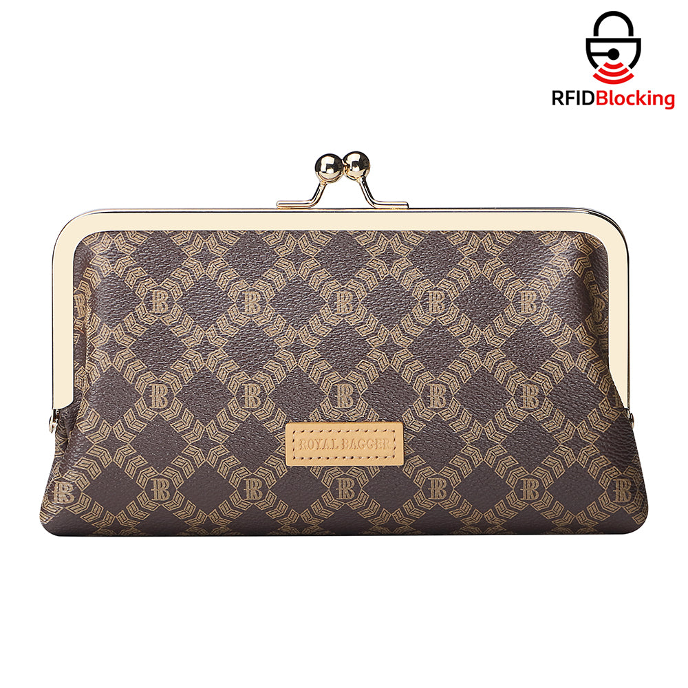 Royal Bagger Women's RFID Clutch Wallet, Signature Coated Canvas & Vegetable-Tanned Cowhide Leather Kiss Lock Purse, Multi-Card Holder 5468