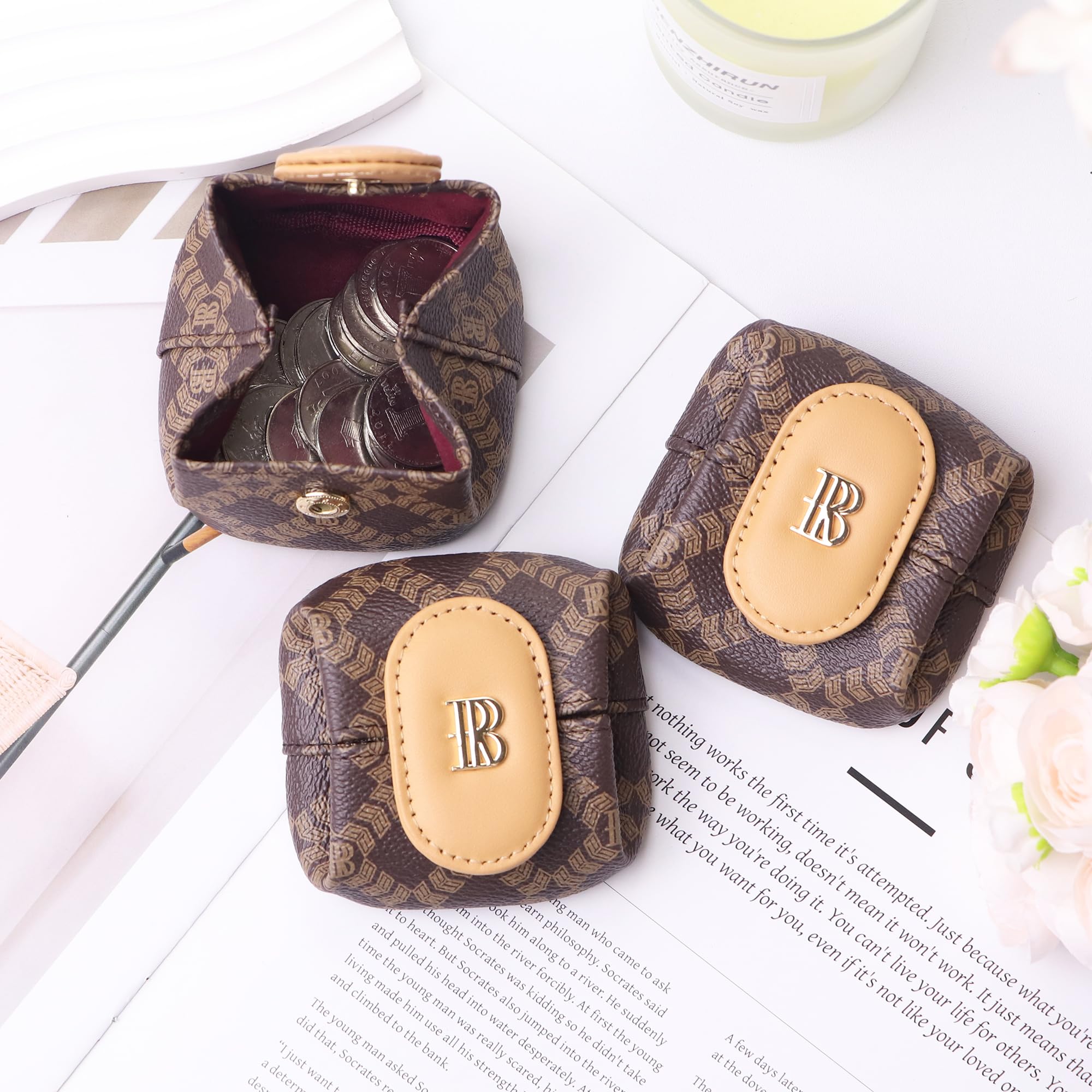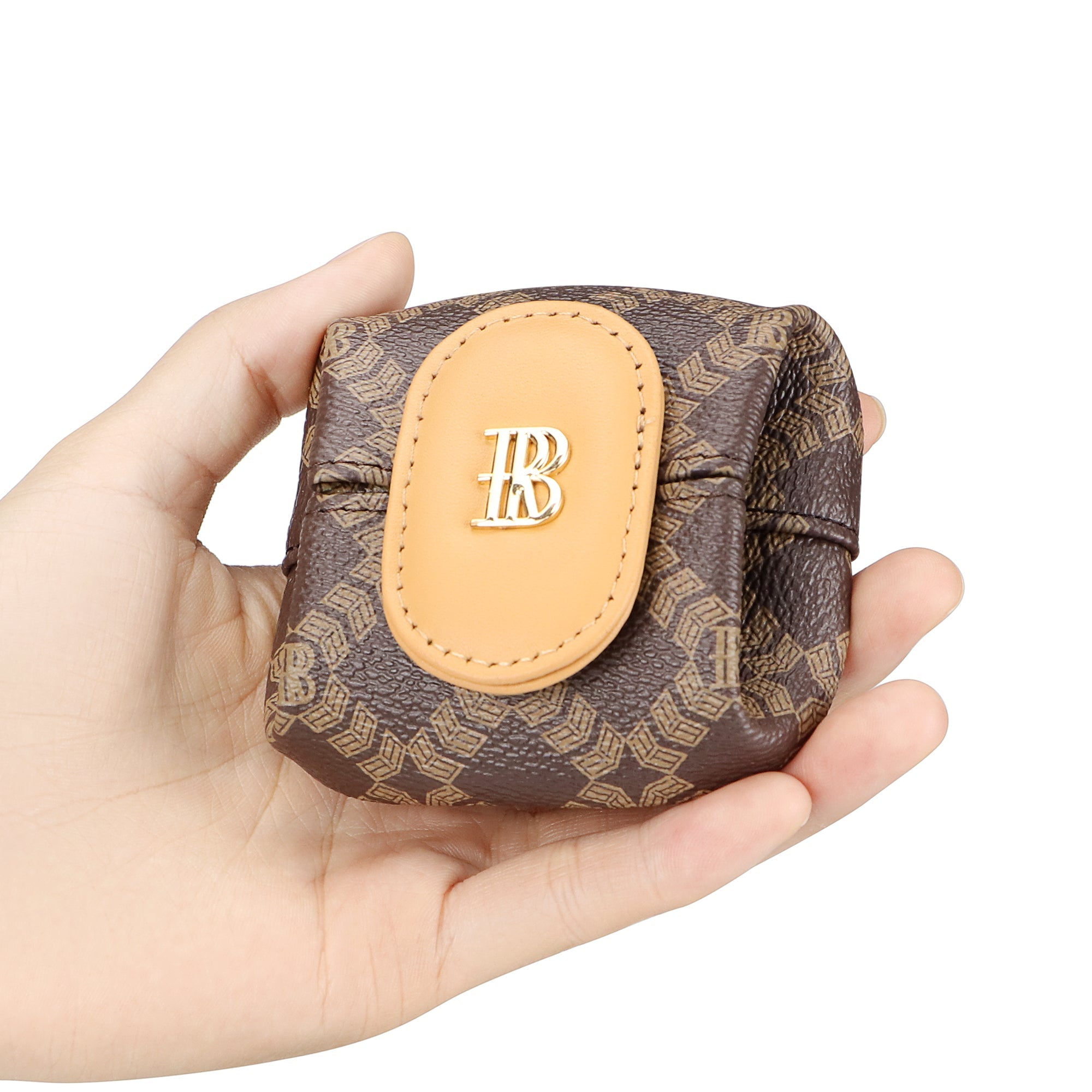 Royal Bagger Mini Women's Coin Purse – Signature Coated Canvas & Vegetable-Tanned Cowhide Leather, Casual Change Pouch for Daily Use 6603
