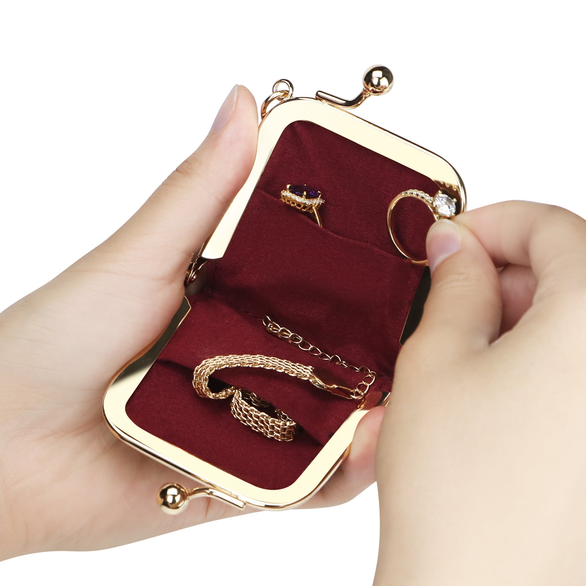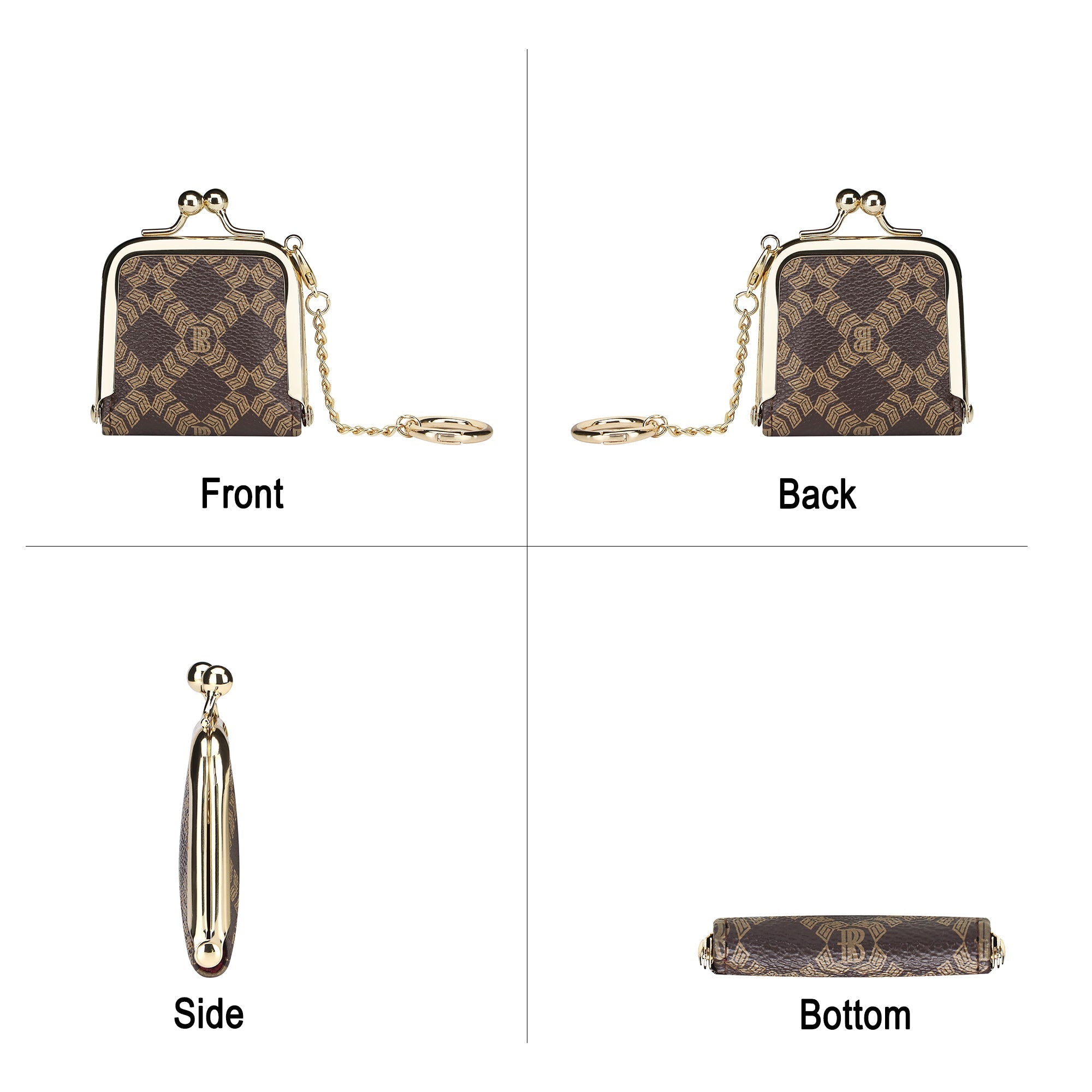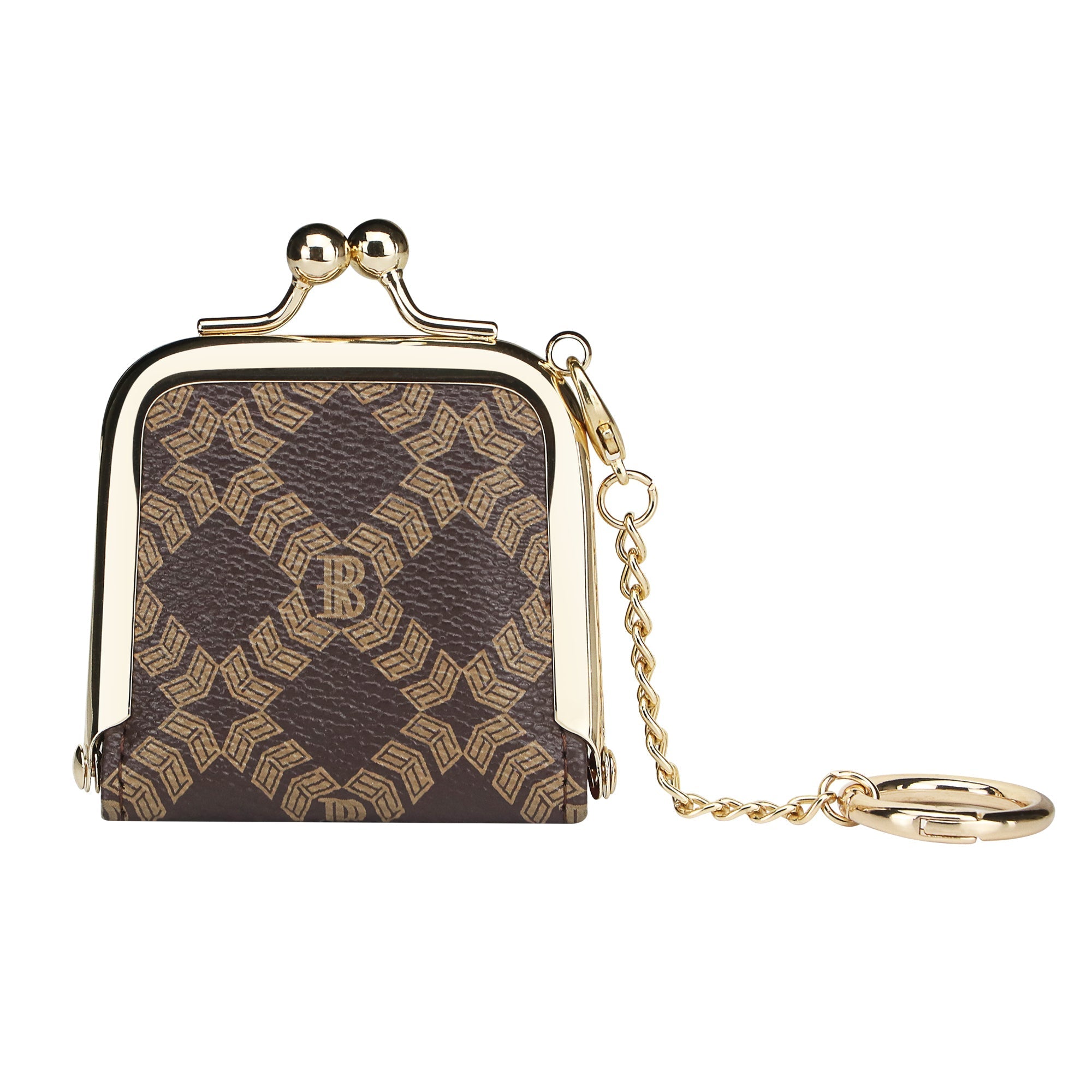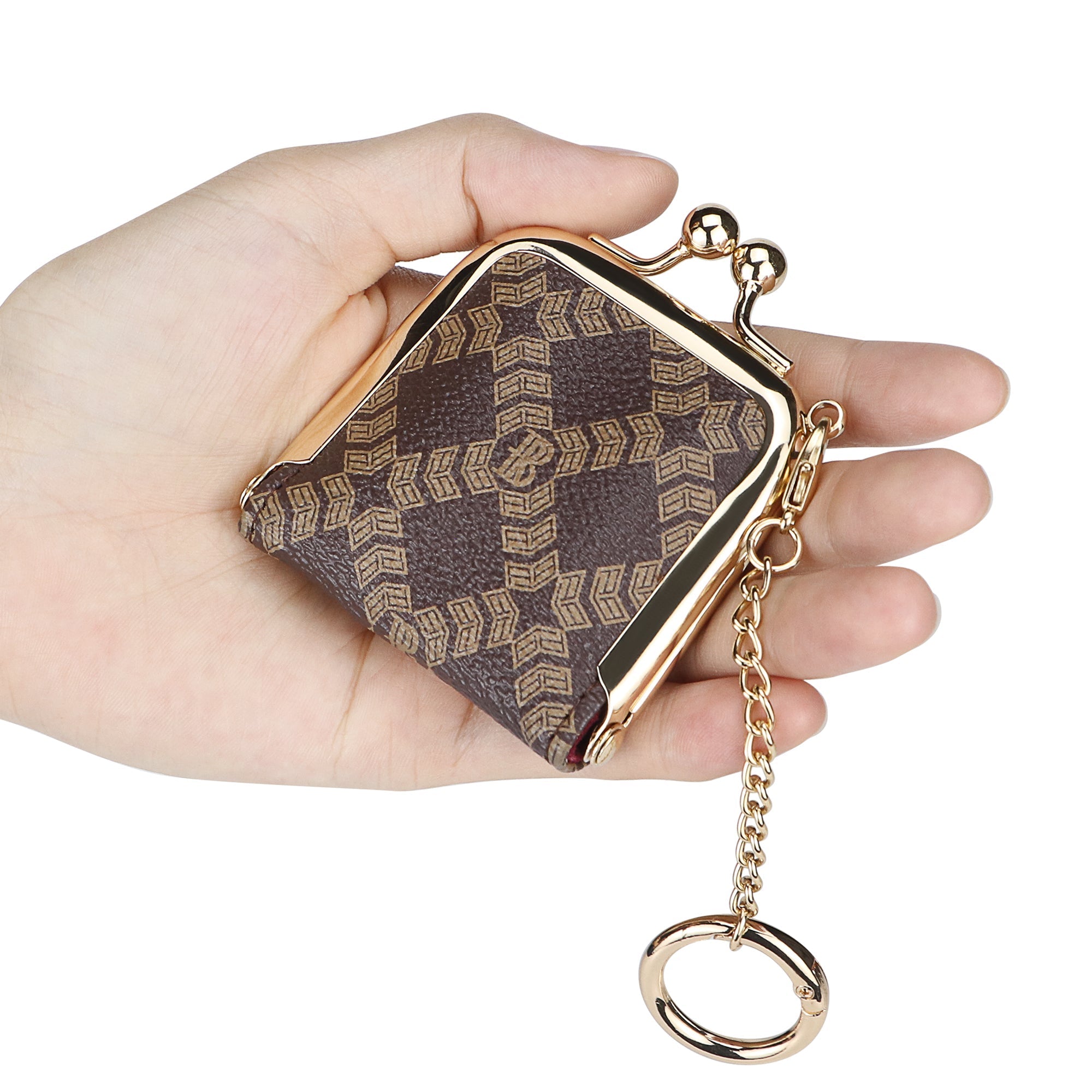 Royal Bagger Mini Retro Jewelry Box for Women, Slim Kiss Lock Purse with Removable Chain, Signature Coated Canvas & Vegetable-Tanned Cowhide Leather 7120
