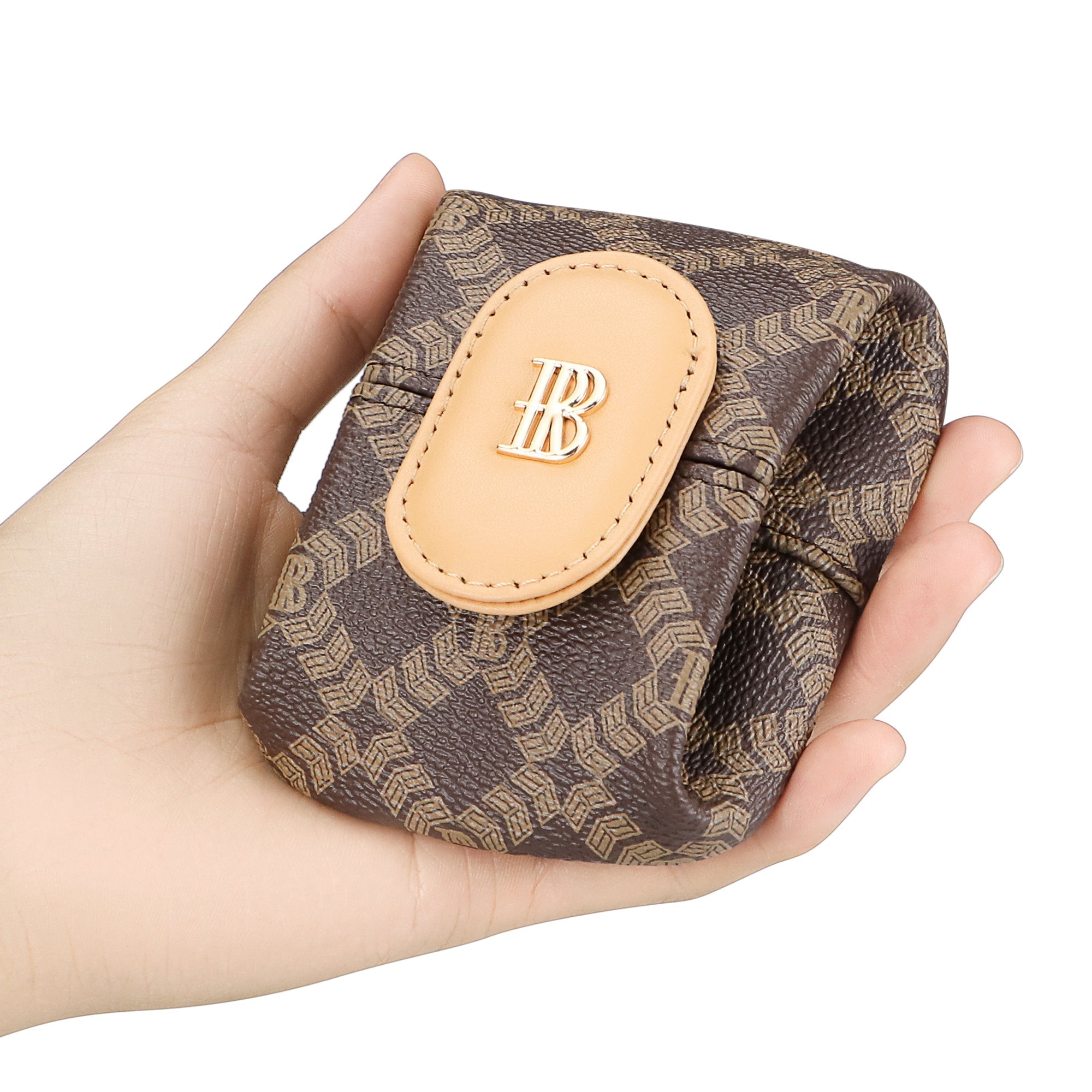 Royal Bagger RFID Mini Coin Purse for Women – Signature Coated Canvas & Vegetable-Tanned Cowhide Leather, Small Wallet Pouch for Keys, Earphones & Essentials 7603